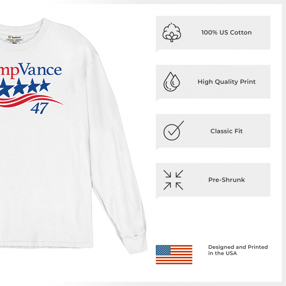 Patriotic "Trump Vance 47" design celebrating America First, conservative values, and the Red Wave, supporting Donald J. Trump as the 47th President.