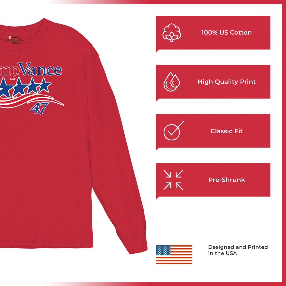 Patriotic "Trump Vance 47" design celebrating America First, conservative values, and the Red Wave, supporting Donald J. Trump as the 47th President.