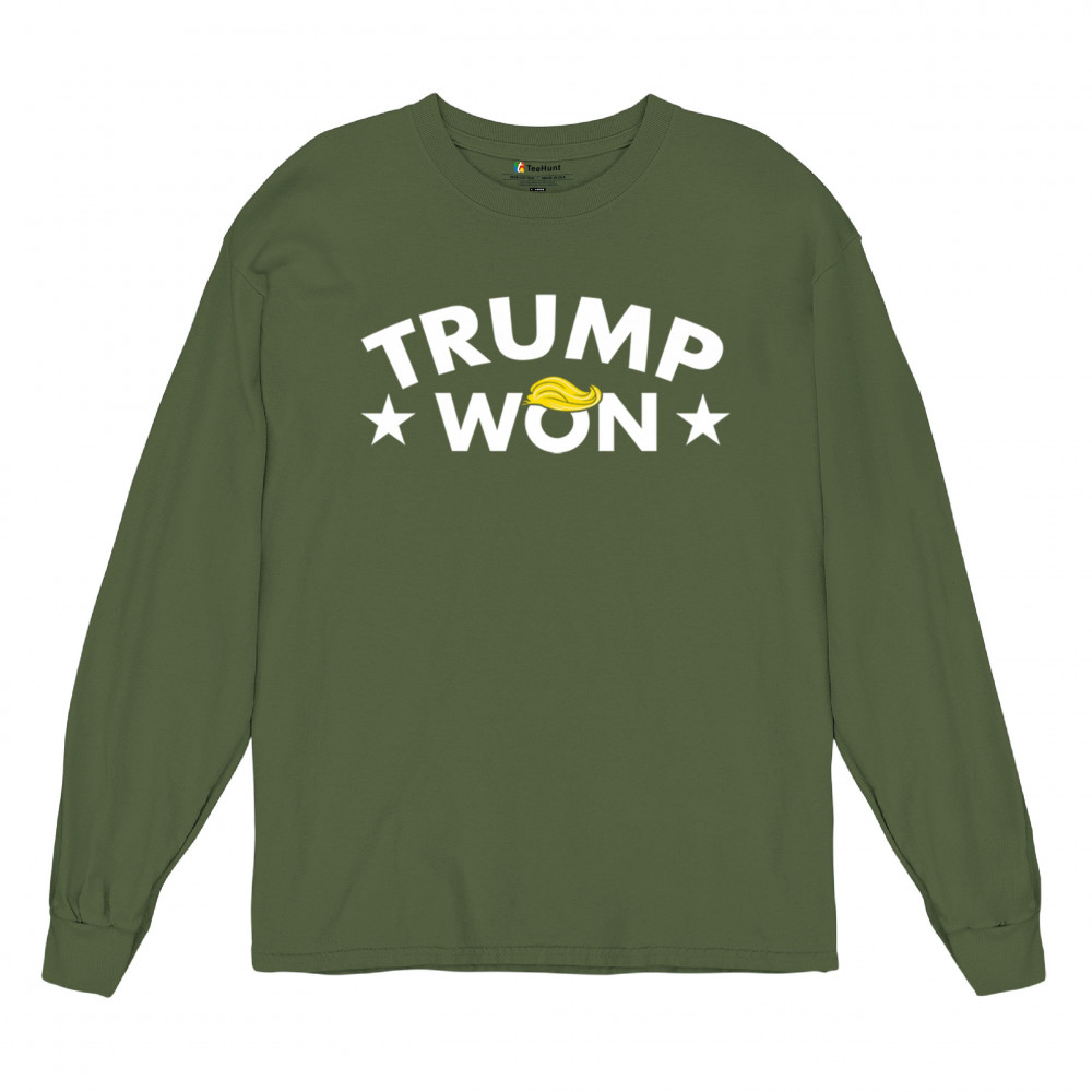 The "Trump Won" design boldly represents the spirit of victory, resilience, and unwavering support for America First principles. Ideal for patriots, Republicans, and supporters of Donald J. Trump, this statement graphic captures the momentum of the Red Wave and the people's mandate. Make your voice heard and show your dedication to the fight for freedom with this iconic design.