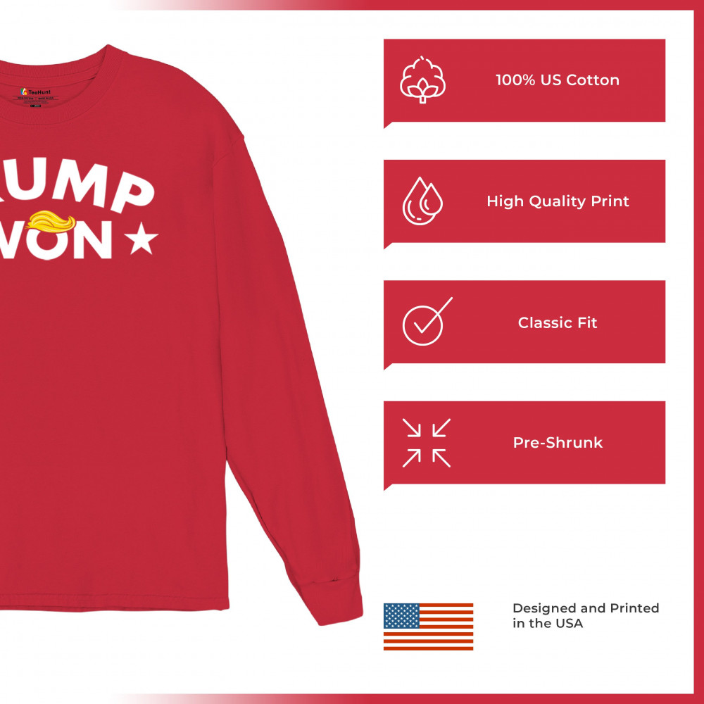 Boldly celebrate America First with the "Trump Won" design! Perfect for patriots and Republicans backing Donald J. Trump and the Red Wave movement.