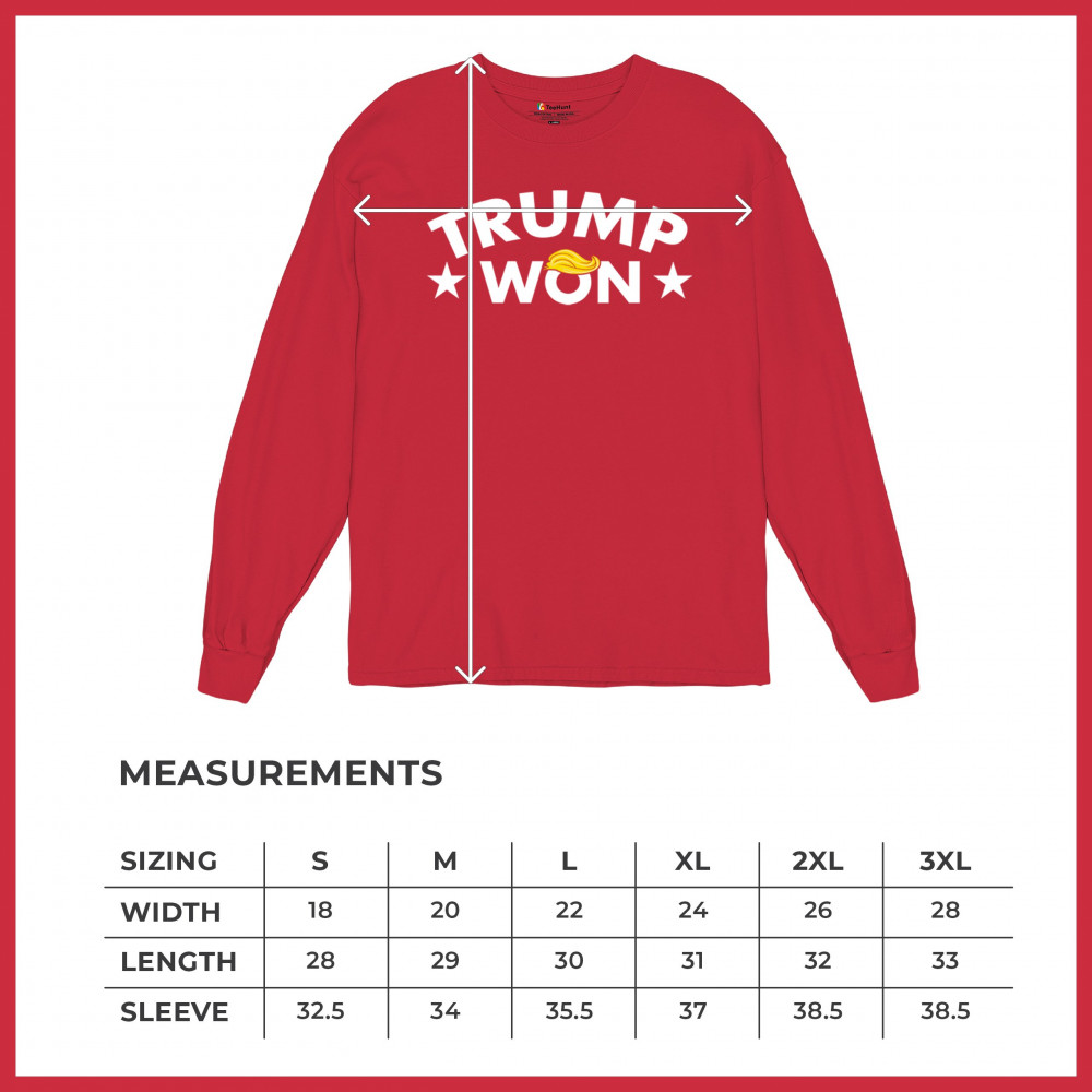 The "Trump Won" design boldly represents the spirit of victory, resilience, and unwavering support for America First principles. Ideal for patriots, Republicans, and supporters of Donald J. Trump, this statement graphic captures the momentum of the Red Wave and the people's mandate. Make your voice heard and show your dedication to the fight for freedom with this iconic design.