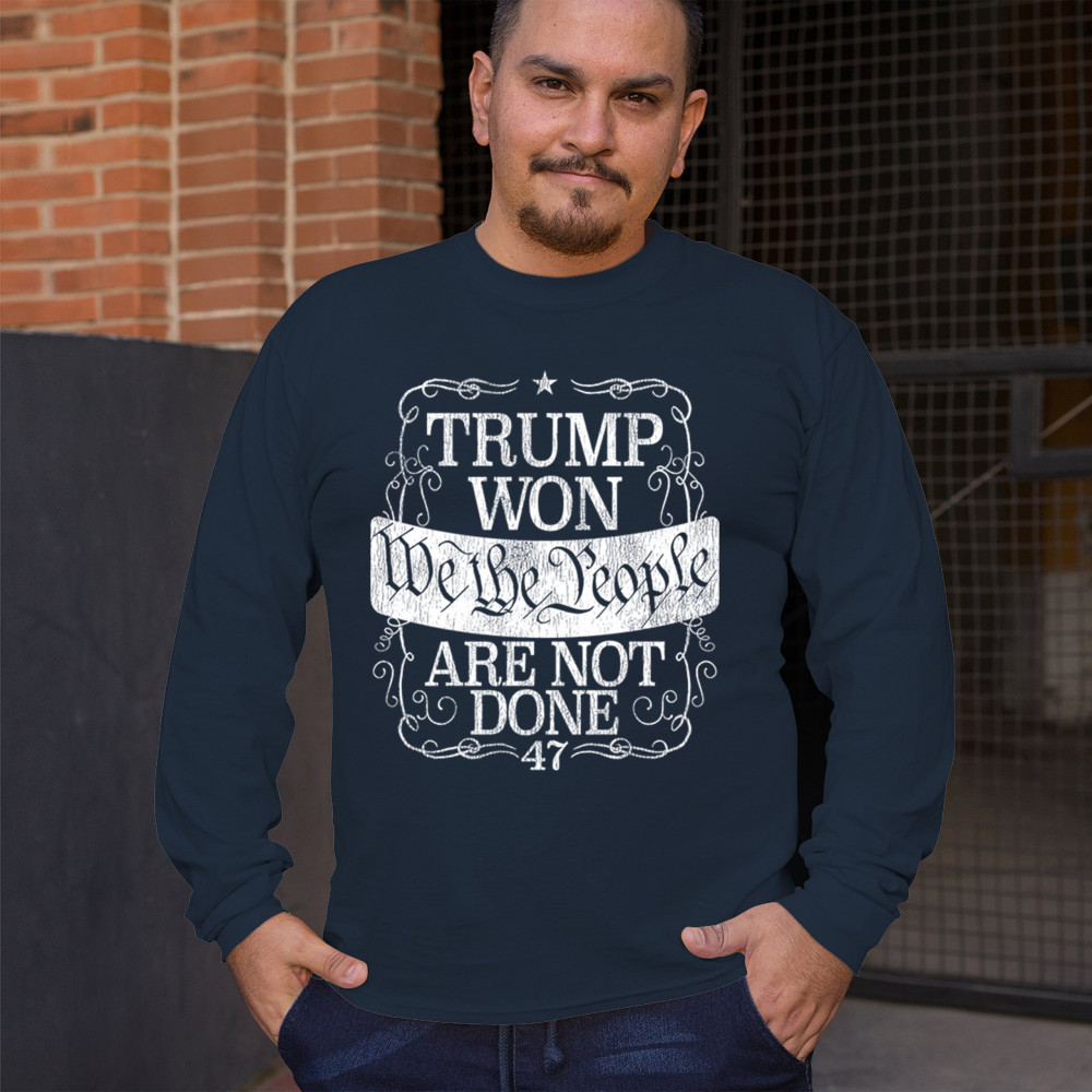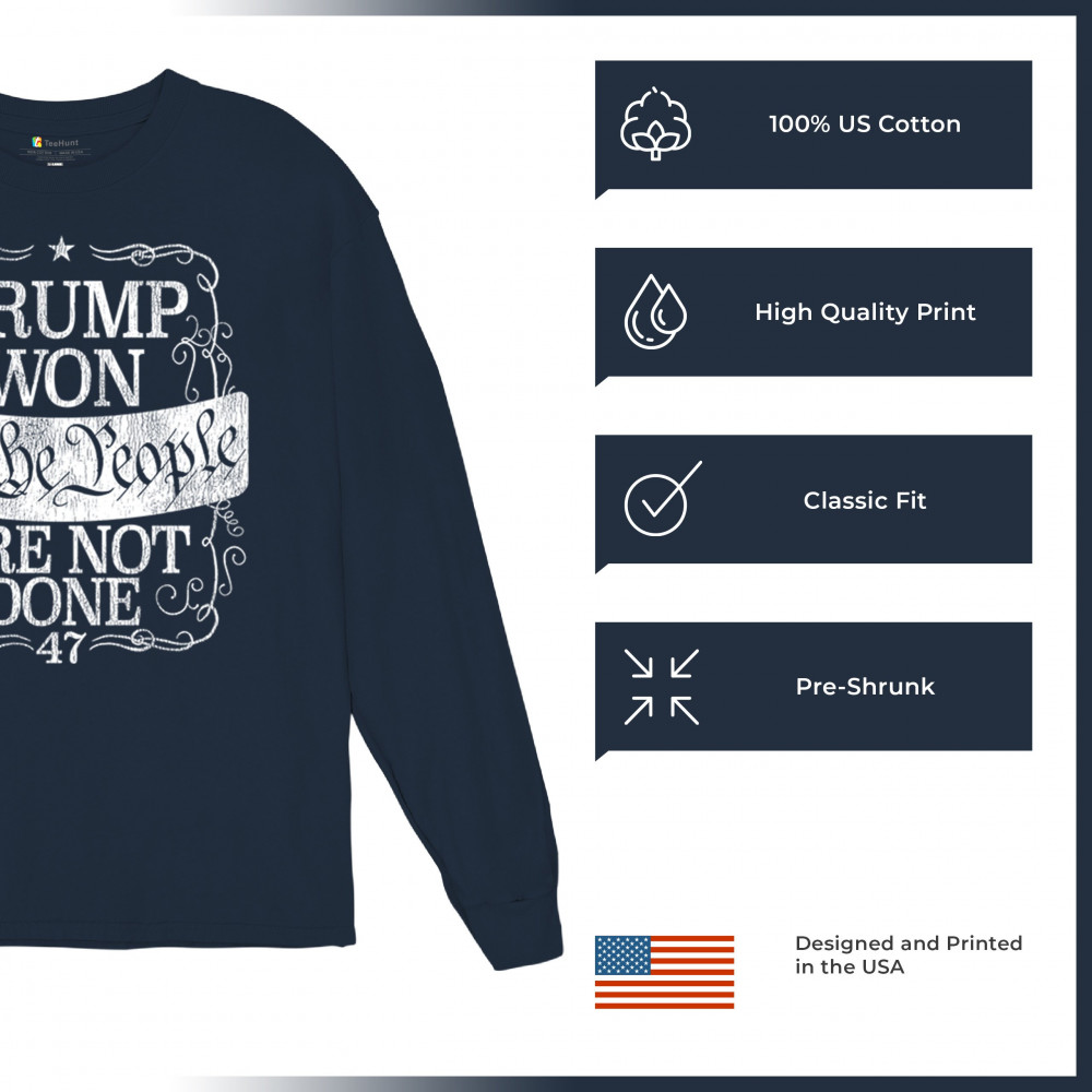 Celebrate the power of "We the People" with this "Trump Won" design, a rallying cry for those who support Donald J. Trump and the Republican movement. Featuring bold typography and a message of resilience, it embodies the conservative fight for victory and unity. Perfect for events, gifts, or everyday wear, it’s a powerful statement of faith in the party of common sense and the people's mandate.