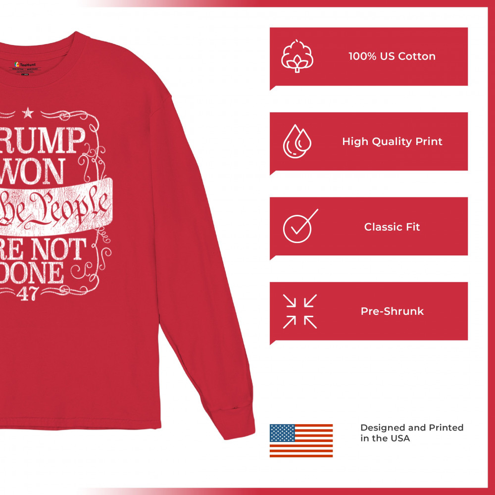 Trump Won design celebrating conservative victory, "We the People," and unity. Perfect for patriots and Republican supporters of the Red Wave.