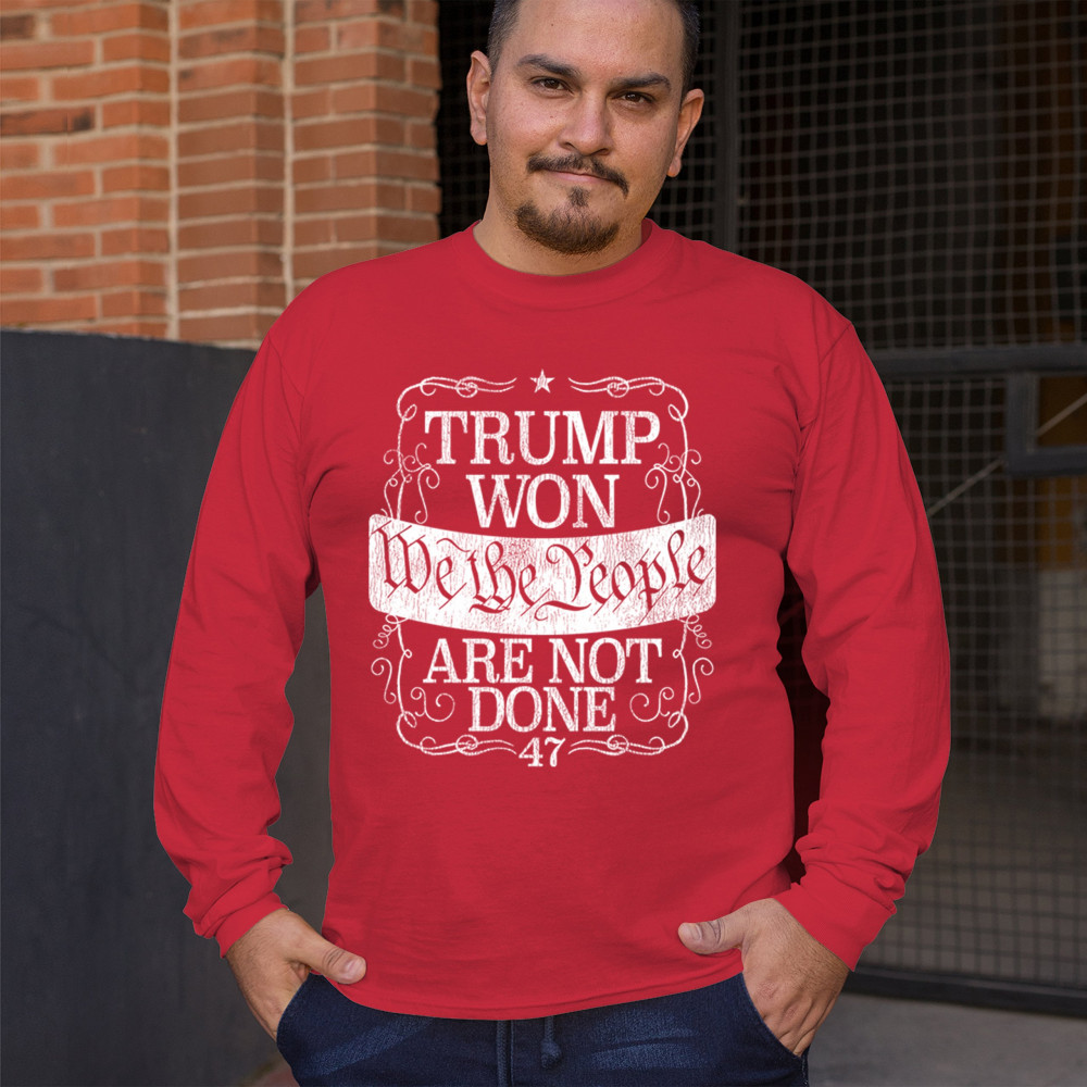 Celebrate the power of "We the People" with this "Trump Won" design, a rallying cry for those who support Donald J. Trump and the Republican movement. Featuring bold typography and a message of resilience, it embodies the conservative fight for victory and unity. Perfect for events, gifts, or everyday wear, it’s a powerful statement of faith in the party of common sense and the people's mandate.