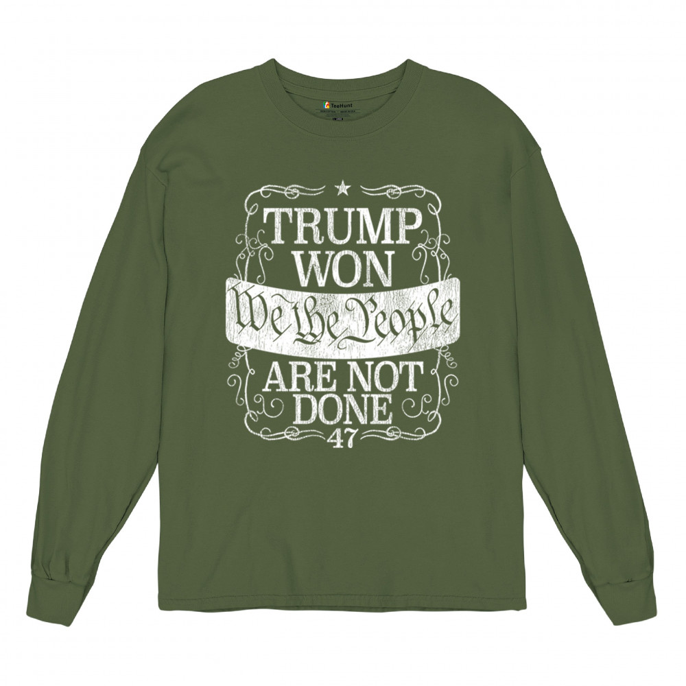 Celebrate the power of "We the People" with this "Trump Won" design, a rallying cry for those who support Donald J. Trump and the Republican movement. Featuring bold typography and a message of resilience, it embodies the conservative fight for victory and unity. Perfect for events, gifts, or everyday wear, it’s a powerful statement of faith in the party of common sense and the people's mandate.