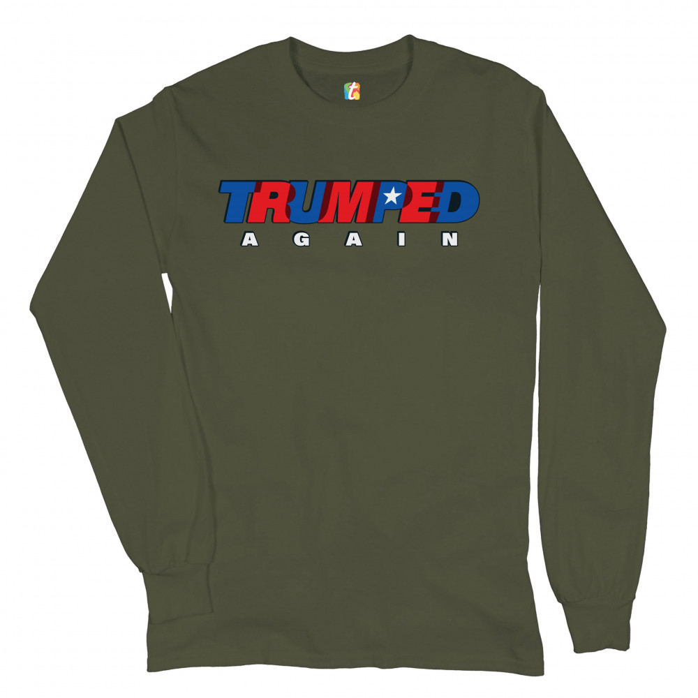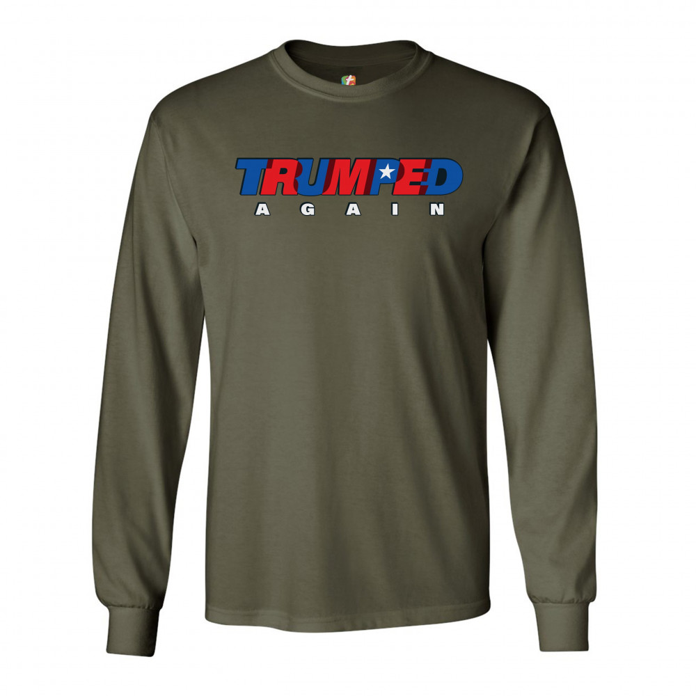 TRUMPED AGAIN long sleeve t-shirt donald trump 2024 keep america great maga military green