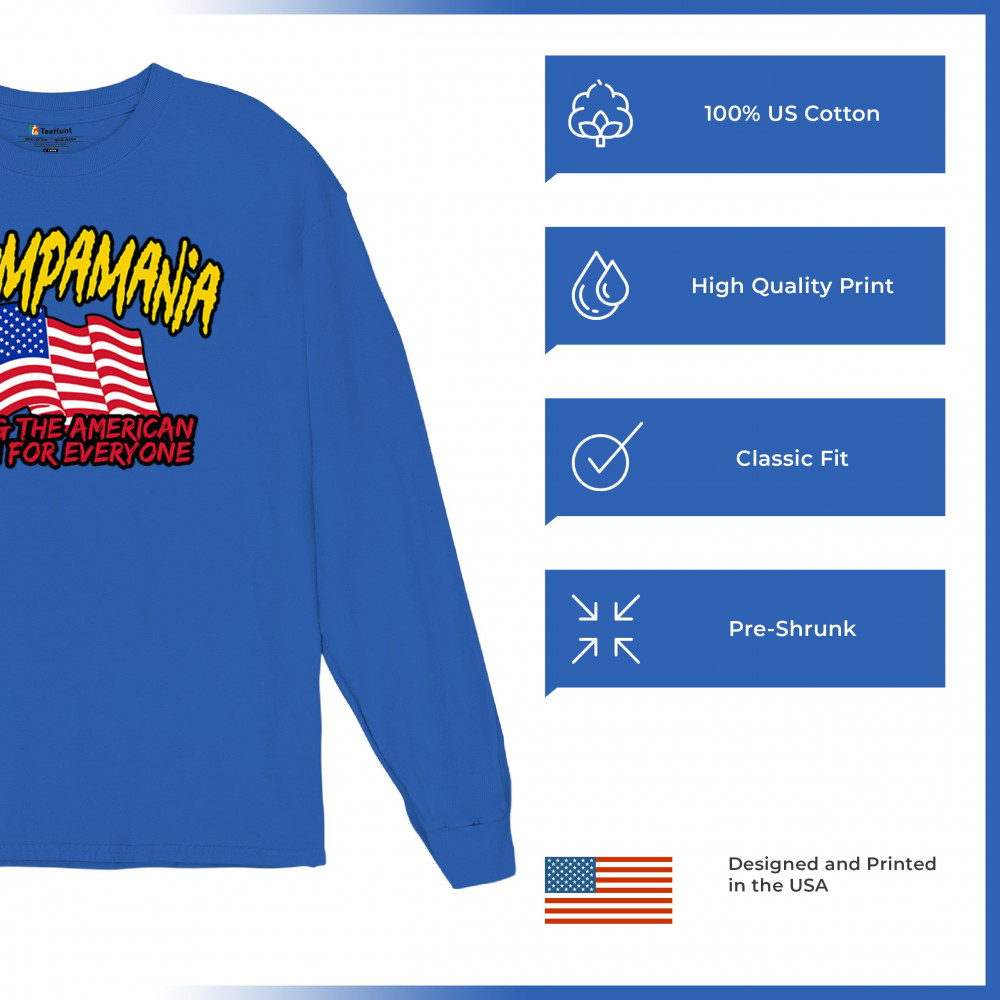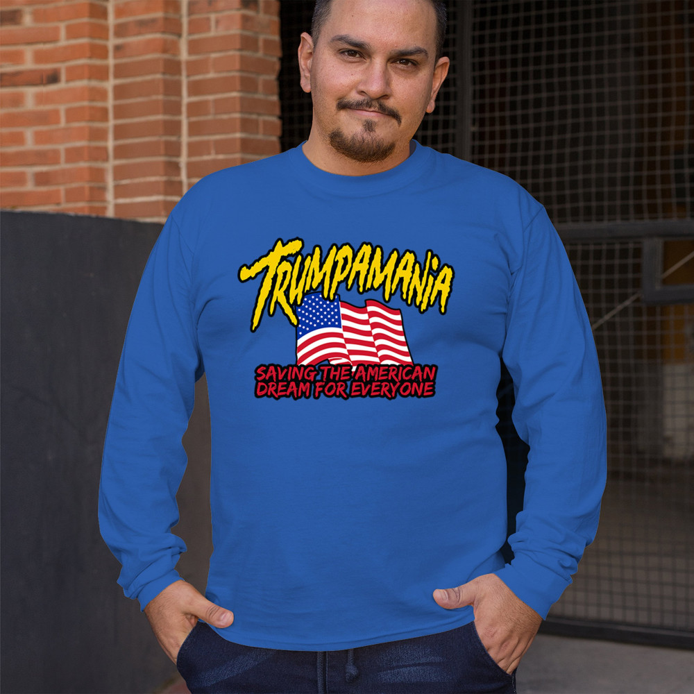 Show your patriotic pride with the "Trumpamania" design. Perfect for rallies, it embodies conservatism, trust in God, and the fight for America.