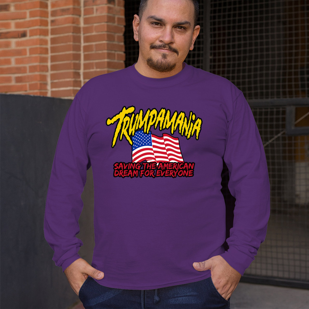 Celebrate the American dream with this powerful "Trumpamania" design. Perfect for rallies and beyond, this design captures the essence of conservatism and the fight for freedom. It’s a testament to the unstoppable spirit of those who trust in God and reject government overreach. With an American flag proudly displayed, this design aligns with the values of victory, rebellion, and unwavering support for Trump.