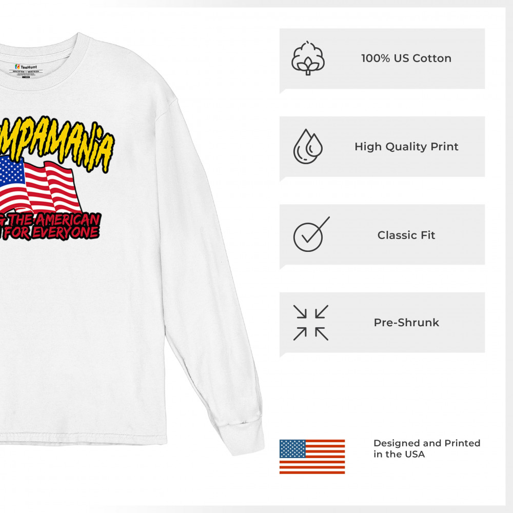 Celebrate the American dream with this powerful "Trumpamania" design. Perfect for rallies and beyond, this design captures the essence of conservatism and the fight for freedom. It’s a testament to the unstoppable spirit of those who trust in God and reject government overreach. With an American flag proudly displayed, this design aligns with the values of victory, rebellion, and unwavering support for Trump.