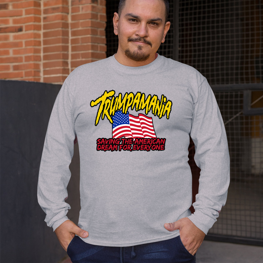Celebrate the American dream with this powerful "Trumpamania" design. Perfect for rallies and beyond, this design captures the essence of conservatism and the fight for freedom. It’s a testament to the unstoppable spirit of those who trust in God and reject government overreach. With an American flag proudly displayed, this design aligns with the values of victory, rebellion, and unwavering support for Trump.