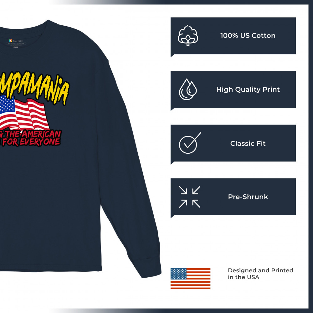 Show your patriotic pride with the "Trumpamania" design. Perfect for rallies, it embodies conservatism, trust in God, and the fight for America.