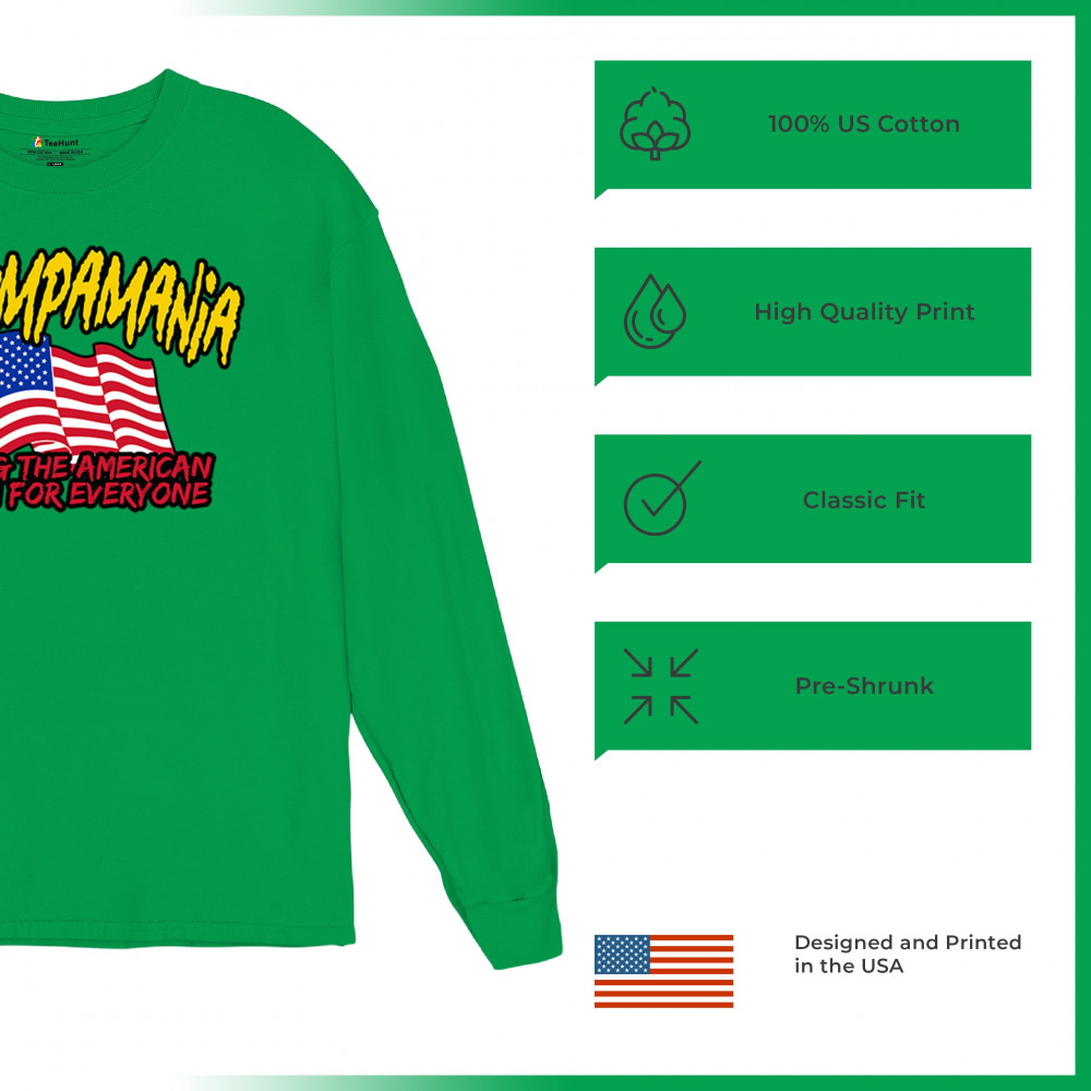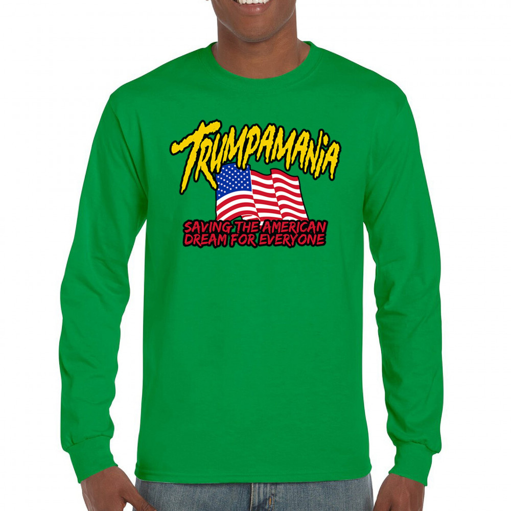 Show your patriotic pride with the "Trumpamania" design. Perfect for rallies, it embodies conservatism, trust in God, and the fight for America.