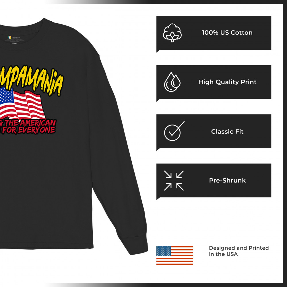 Celebrate the American dream with this powerful "Trumpamania" design. Perfect for rallies and beyond, this design captures the essence of conservatism and the fight for freedom. It’s a testament to the unstoppable spirit of those who trust in God and reject government overreach. With an American flag proudly displayed, this design aligns with the values of victory, rebellion, and unwavering support for Trump.