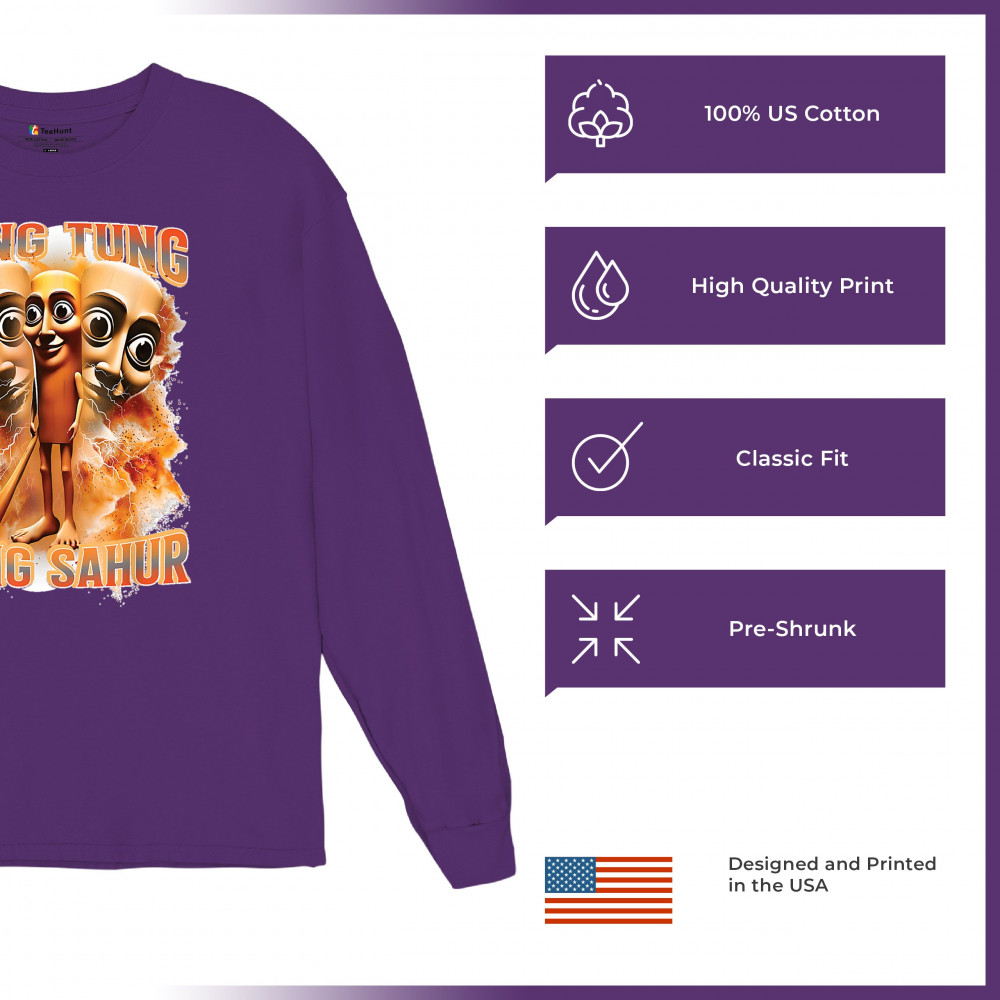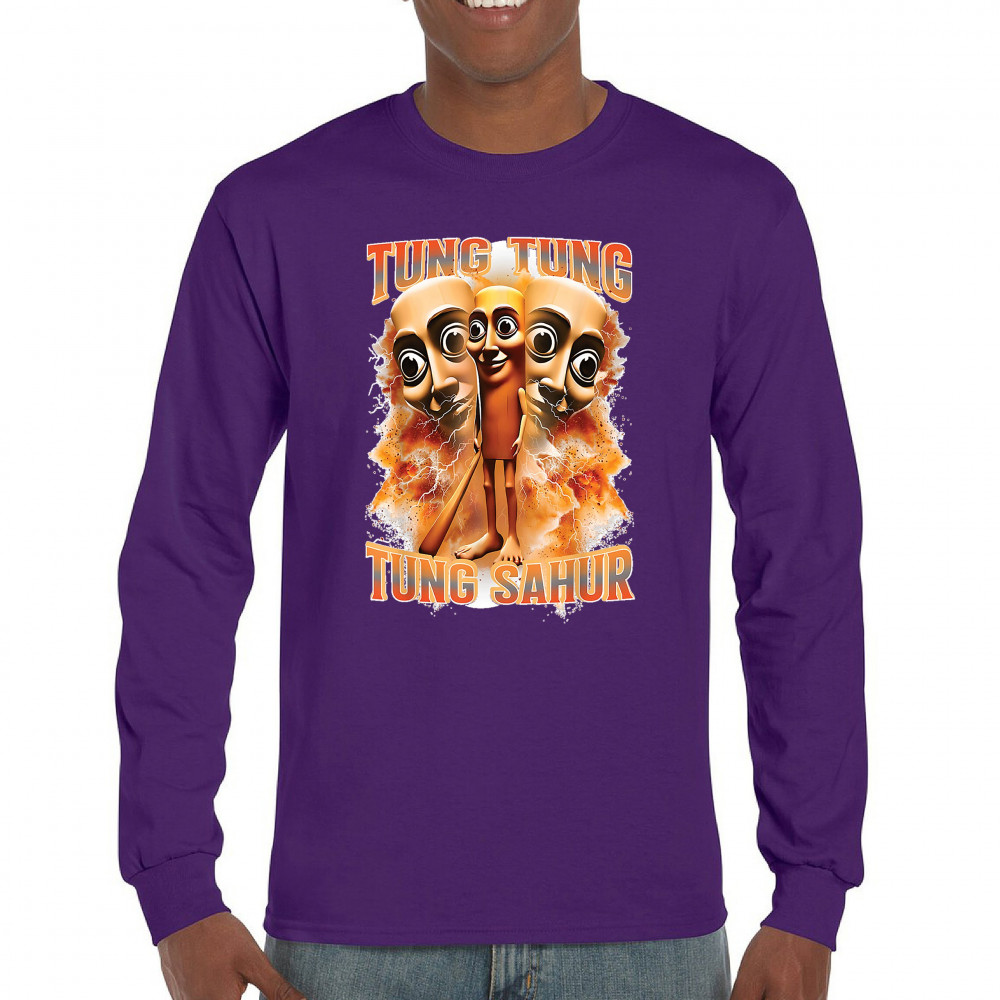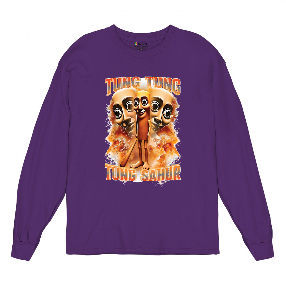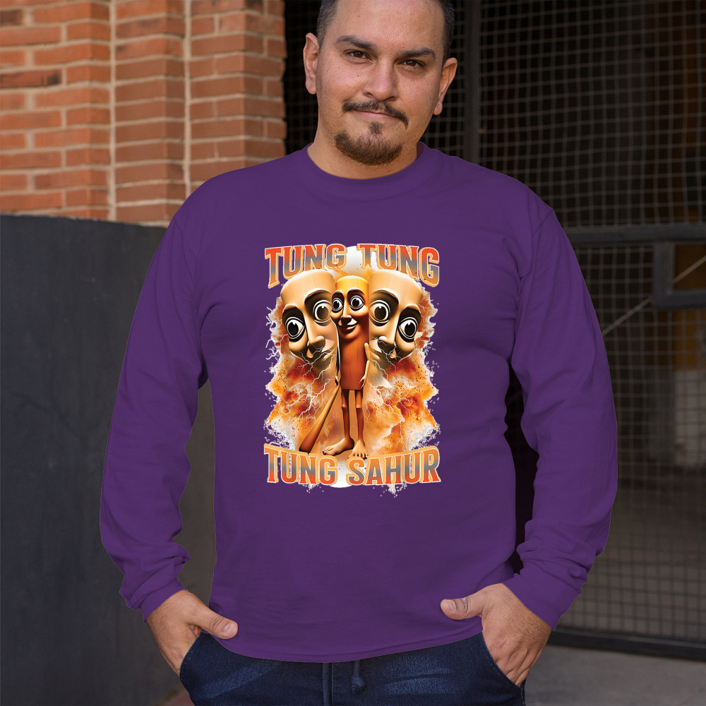 Brace yourself for pure meme insanity with the Tung Tung Tung Sahur shirt—a cursed-core fever dream built from TikTok chaos and Gen Z humor. This design blends internet meme culture, ironic fashion, brainrot visuals, and Gen Alpha absurdity. Perfect for those who wear memes, laugh at chaos, and live for viral trends.