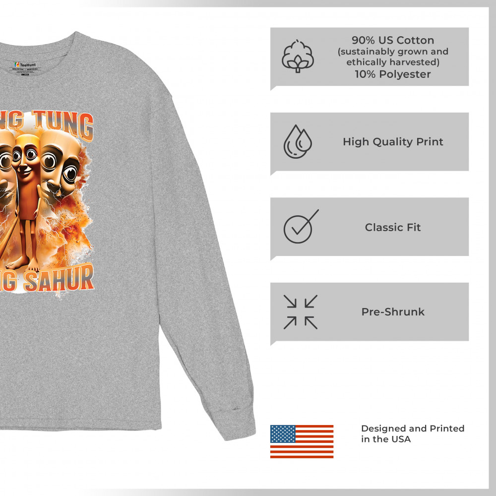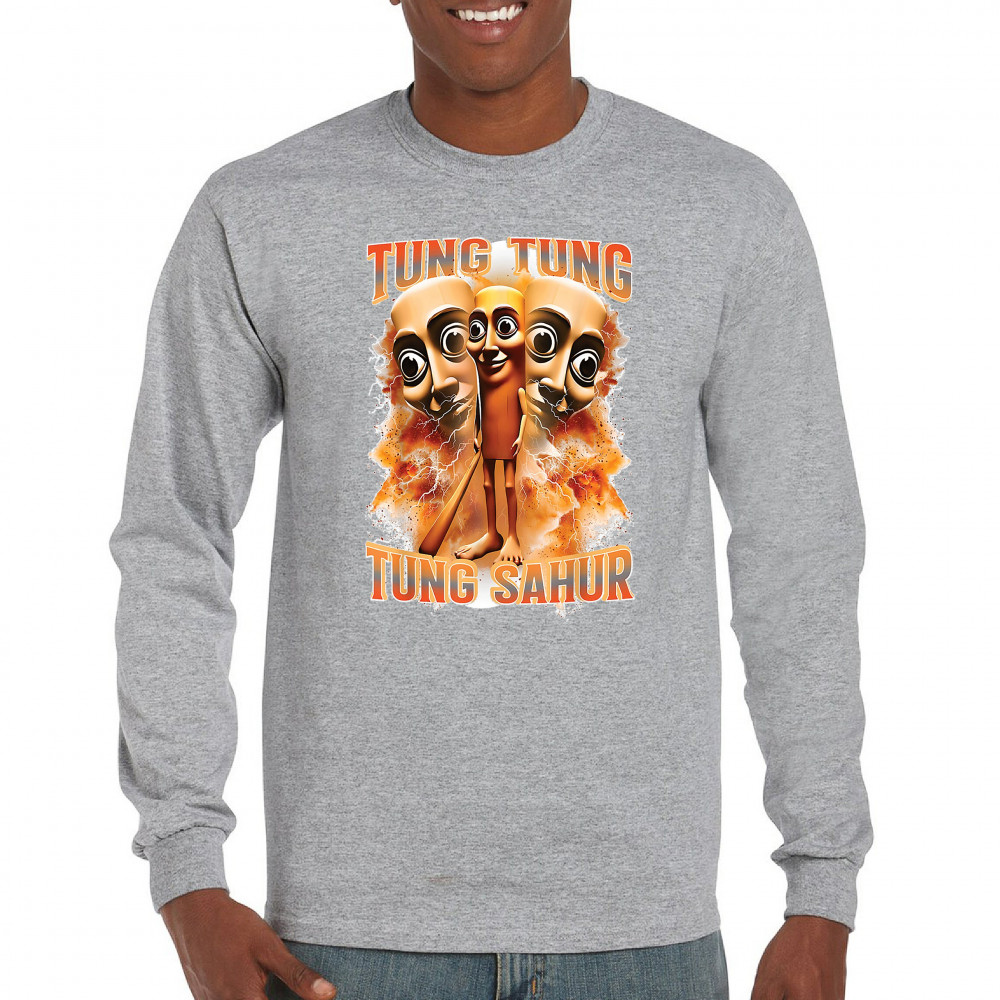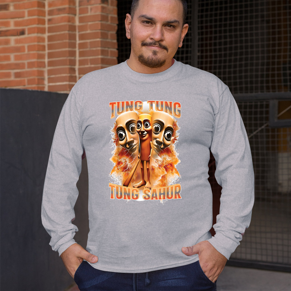 Brace yourself for pure meme insanity with the Tung Tung Tung Sahur shirt—a cursed-core fever dream built from TikTok chaos and Gen Z humor. This design blends internet meme culture, ironic fashion, brainrot visuals, and Gen Alpha absurdity. Perfect for those who wear memes, laugh at chaos, and live for viral trends.
