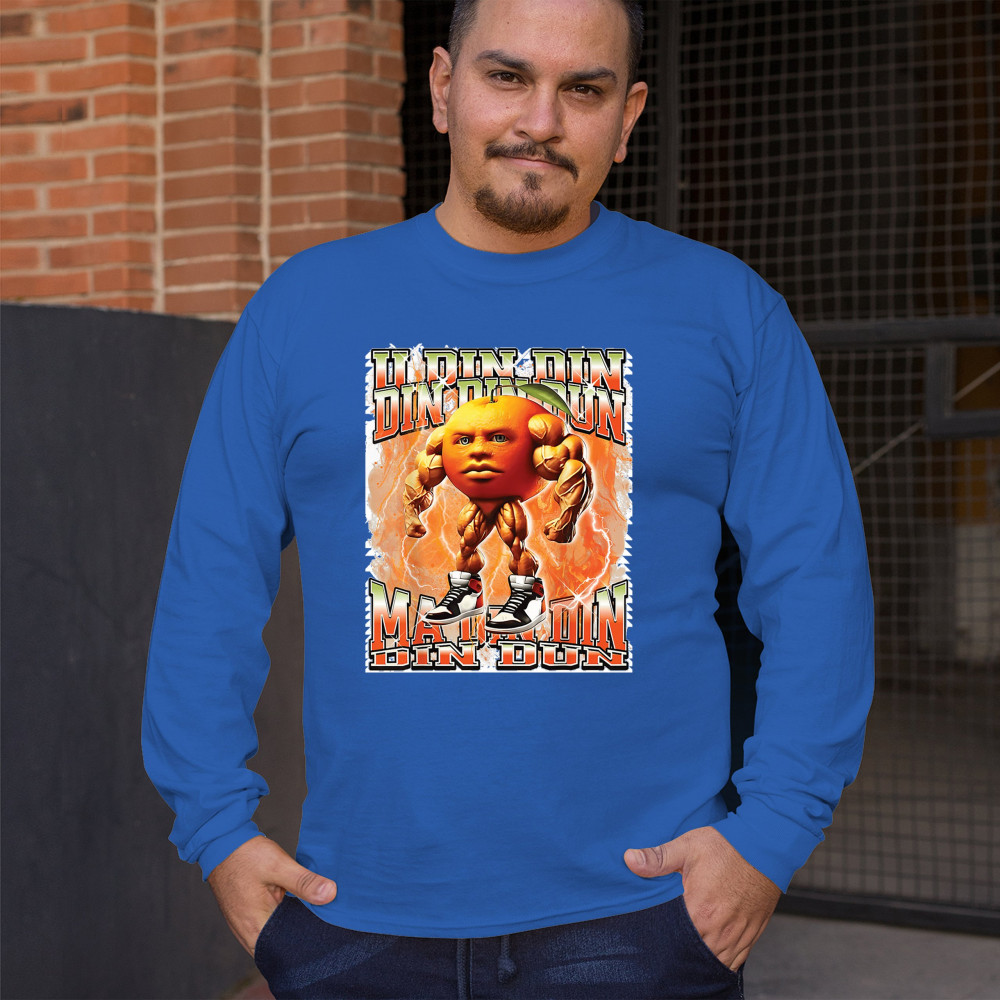 Meet U Din Din Din Din Dun Ma Din Din Din Dun—a jacked-up citrus monstrosity marching straight out of brainrot hell. This design fuses cursed fruit humor, muscle-core absurdity, weirdcore meme style, and TikTok chaos into one deranged fashion statement. Built for meme heads, gym rats with irony, and Gen Z absurdists.