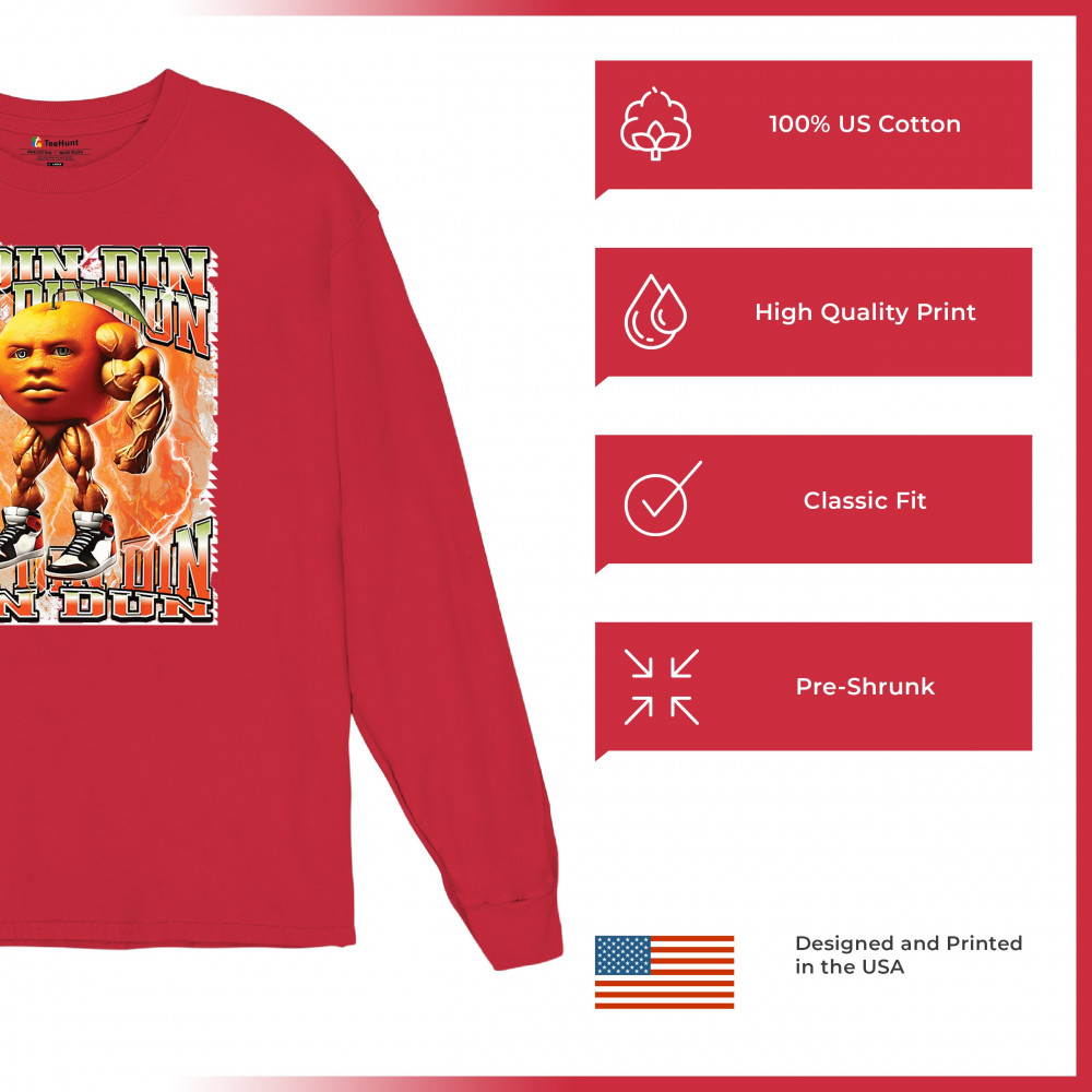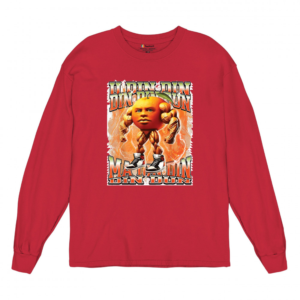 Meet U Din Din Din Din Dun Ma Din Din Din Dun—a jacked-up citrus monstrosity marching straight out of brainrot hell. This design fuses cursed fruit humor, muscle-core absurdity, weirdcore meme style, and TikTok chaos into one deranged fashion statement. Built for meme heads, gym rats with irony, and Gen Z absurdists.