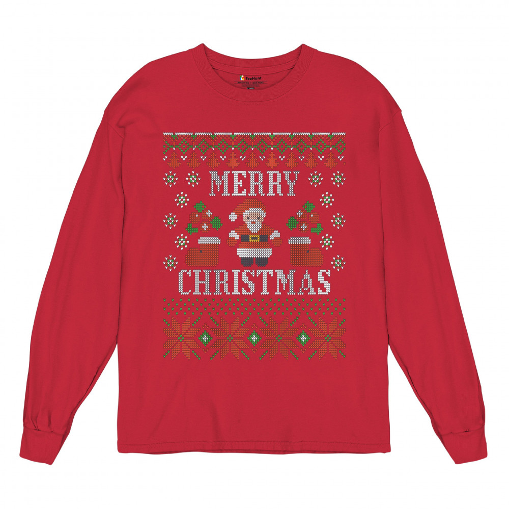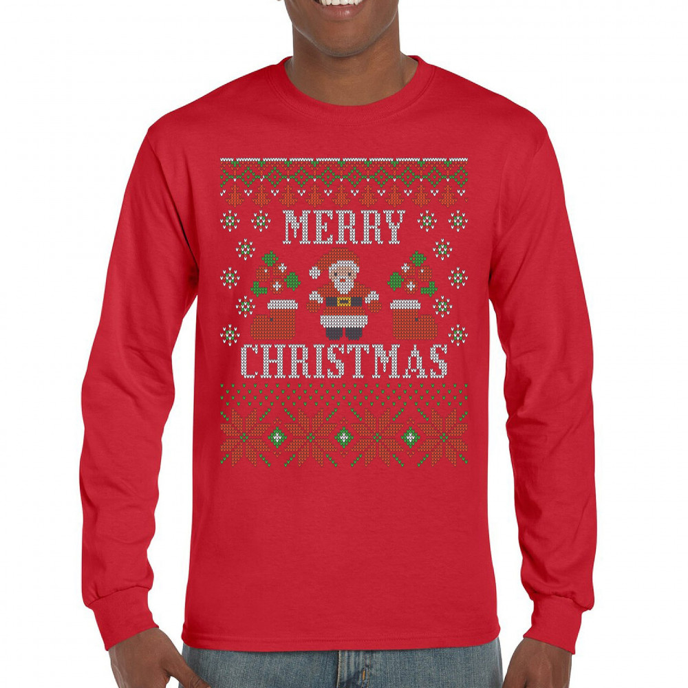 UGLY SWEATER SANTA CLAUS long sleeve t-shirt let it snow christmas jingle bells red