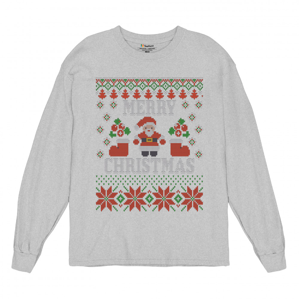 UGLY SWEATER SANTA CLAUS long sleeve t-shirt let it snow christmas jingle bells gray
