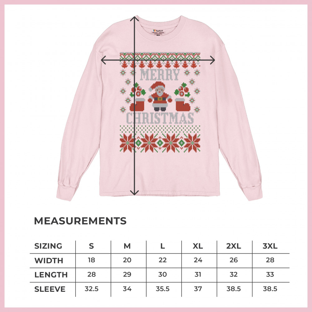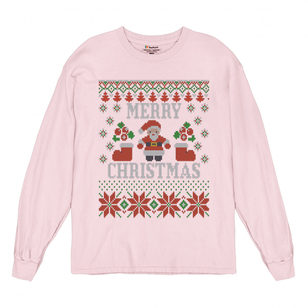 UGLY SWEATER SANTA CLAUS long sleeve t-shirt let it snow christmas jingle bells pink