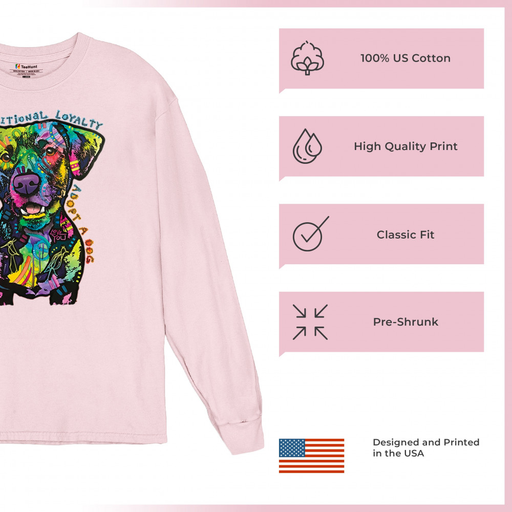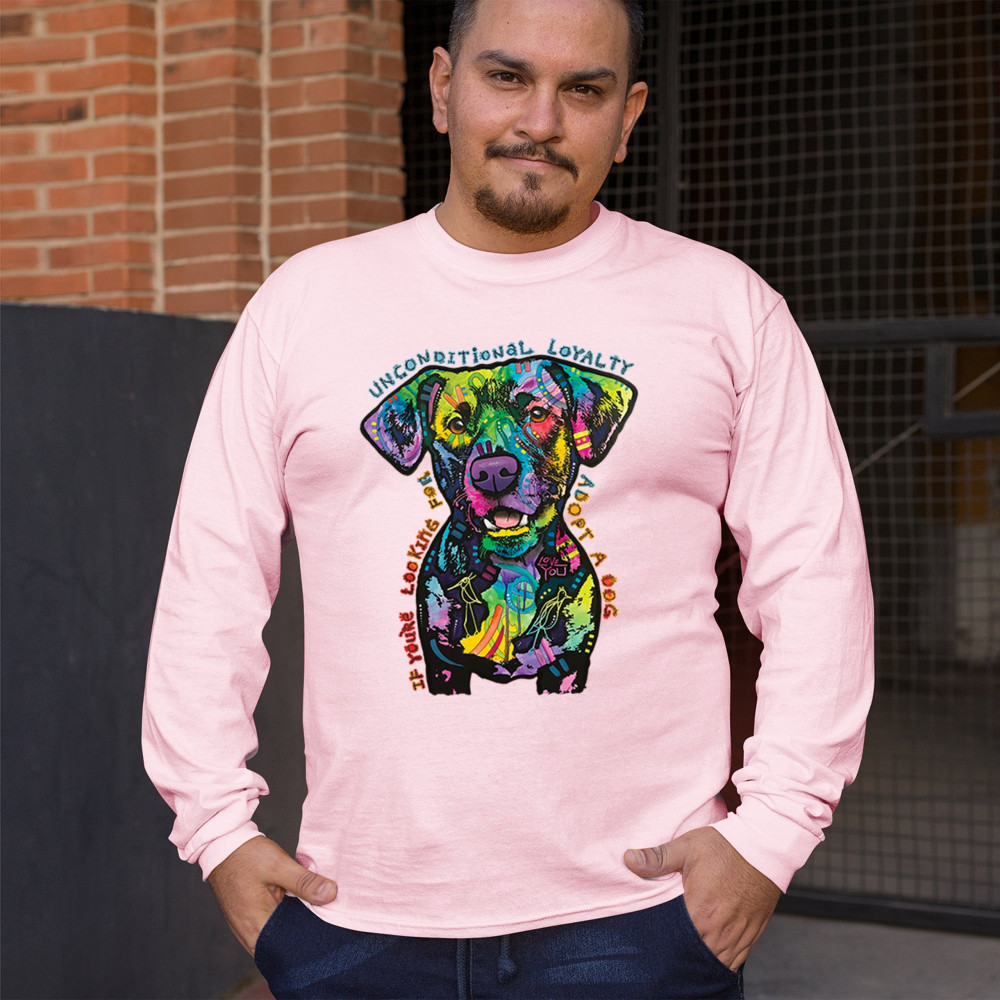 UNCONDITIONAL LOYALTY long sleeve t-shirt adopt a dog dean russo pets pink
