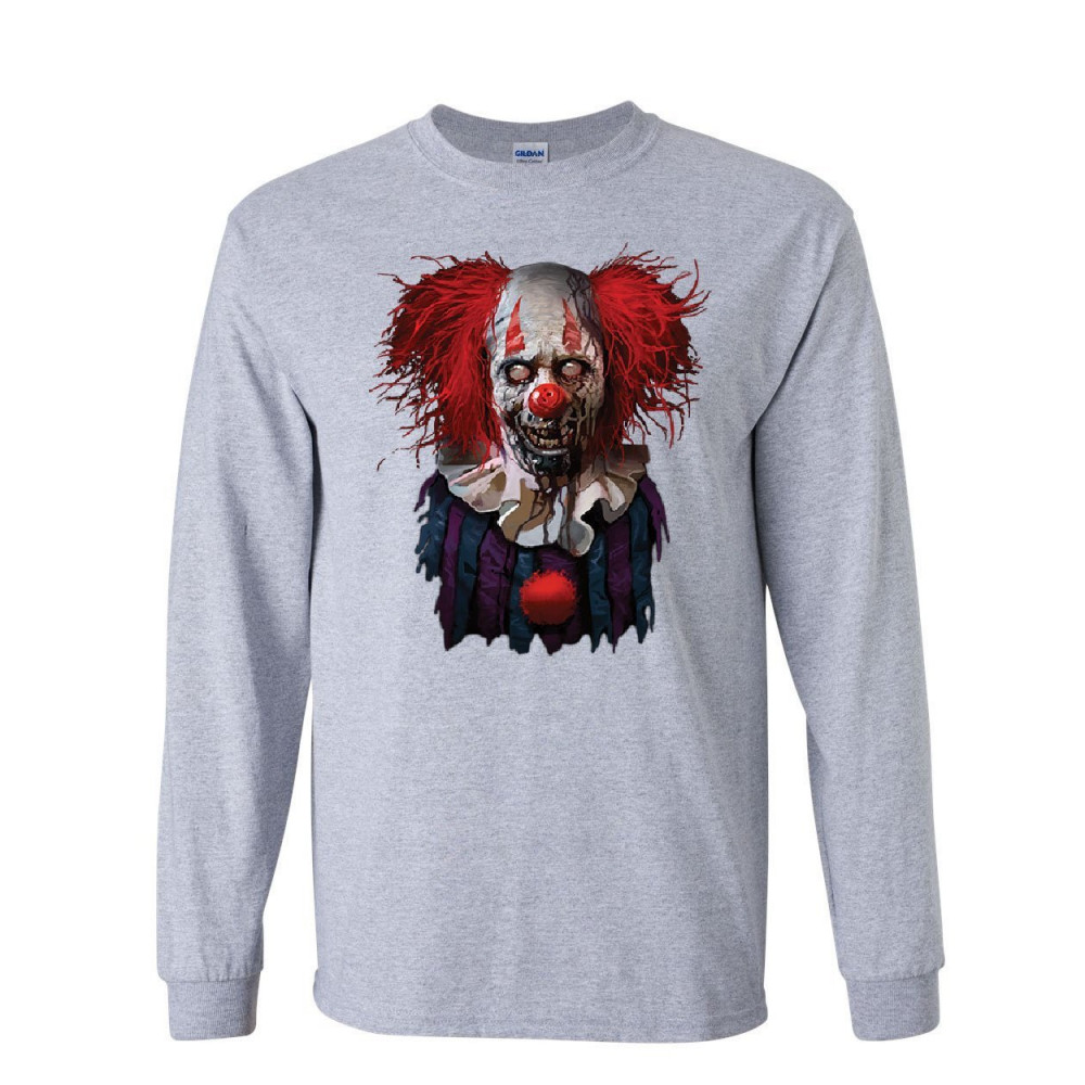 UNDEAD ZOMBIE CLOWN long sleeve t-shirt scary creepy horror nightmare fobia tee gray