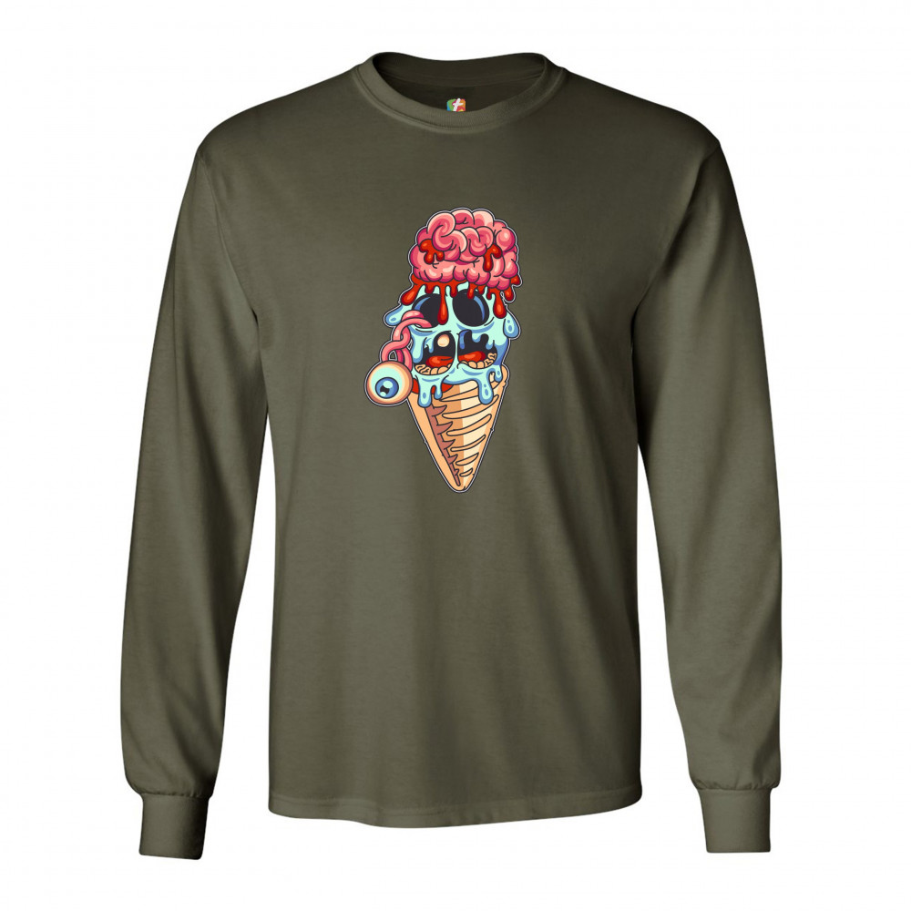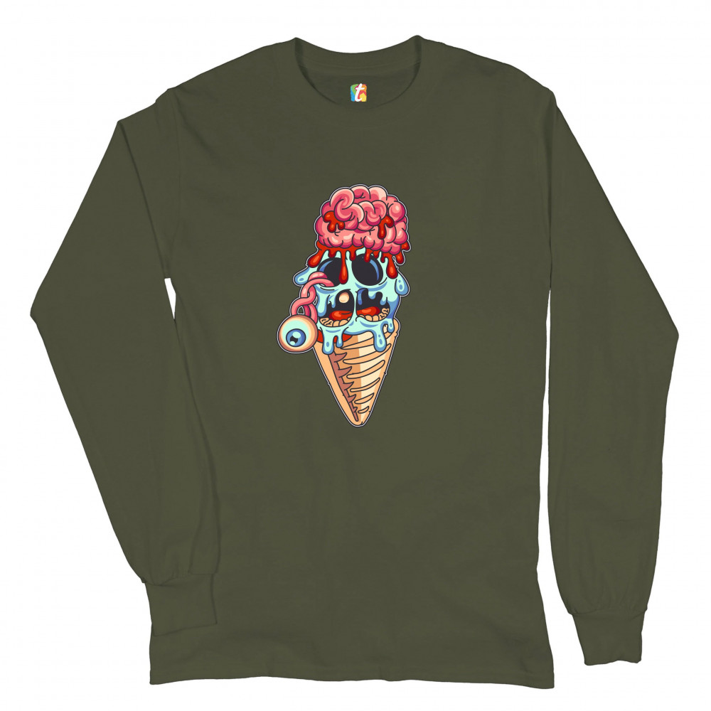 UNDEAD ZOMBIE ICE CREAM long sleeve t-shirt happy halloween eat brains military green