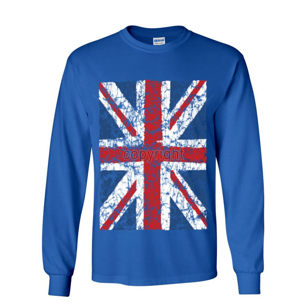 UNION JACK long sleeve t-shirt united kingdom distressed british flag royal blue