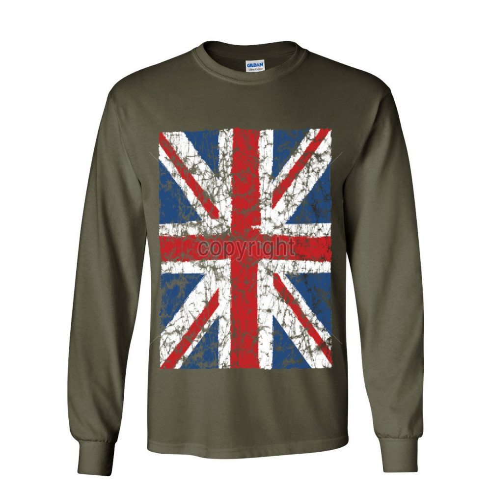 UNION JACK long sleeve t-shirt united kingdom distressed british flag military green