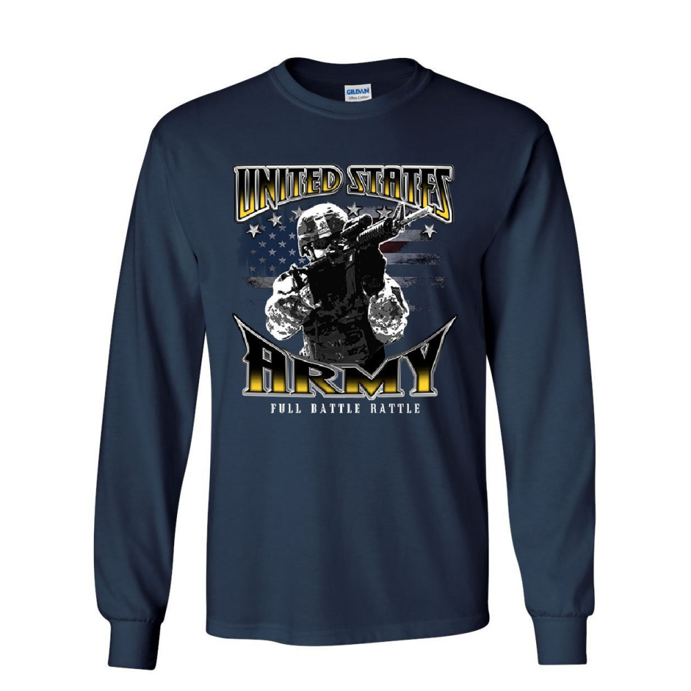 UNITED STATES ARMY FULL BATTLE RATTLE united states army long sleeve t-shirt american soldier full battle rattle tee navy blue