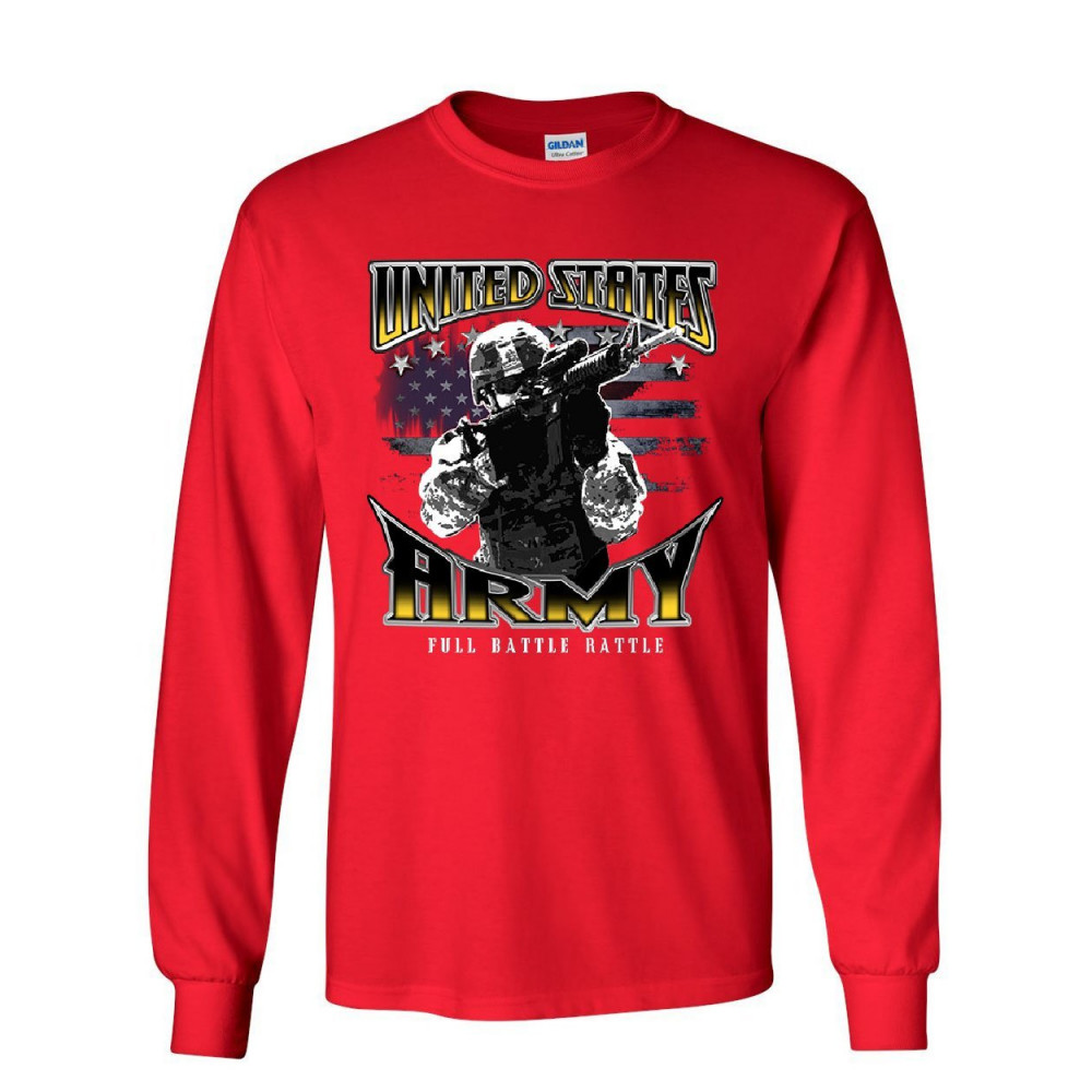 UNITED STATES ARMY FULL BATTLE RATTLE united states army long sleeve t-shirt american soldier full battle rattle tee red