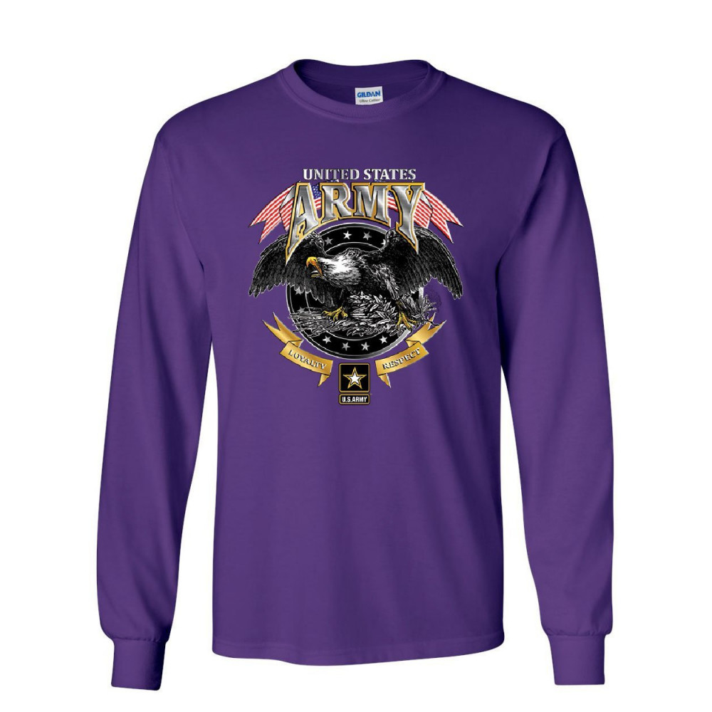 UNITED STATES ARMY long sleeve t-shirt loyalty respect bald eagle pow mia tee purple