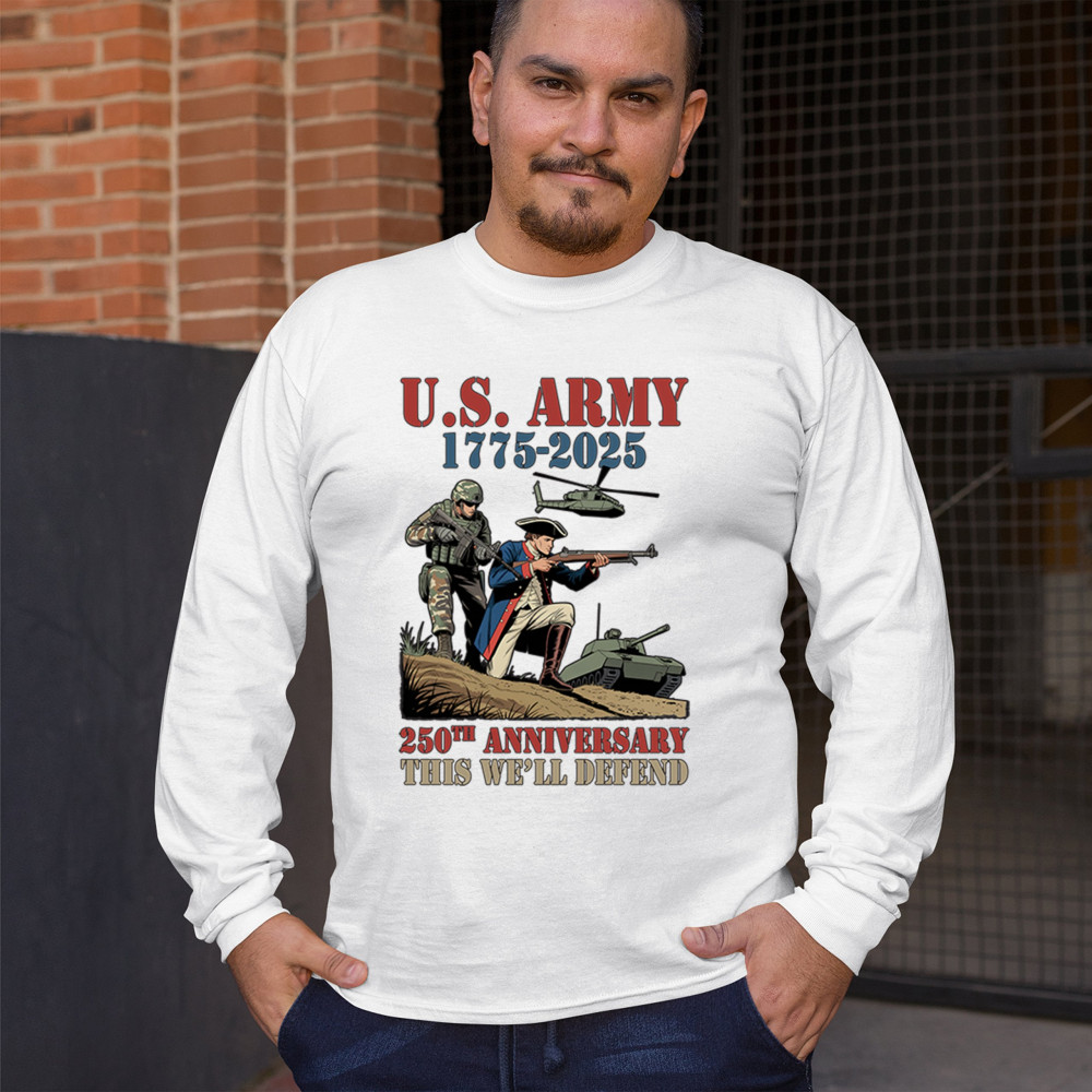 Honor 250 years of bravery and duty with this US Army anniversary design. Featuring historic soldiers, modern military equipment, and patriotic colors, it’s perfect for veterans, soldiers, and all who cherish freedom. Ideal for Army apparel, Veterans Day celebrations, and gifts celebrating the Armed Forces and America’s heritage.
