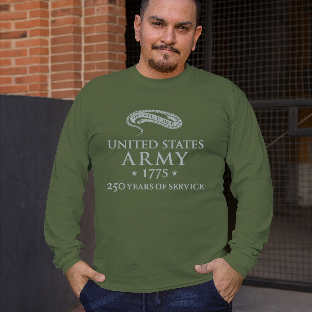 Celebrate 250 years of Army heritage with this powerful design showcasing the “This We’ll Defend†motto and 1775 founding date. Perfect for military veterans, soldiers, and patriotic Americans, it honors armed forces pride, freedom, and America’s legacy of service. A great value for anyone passionate about Army apparel and DD214 pride.