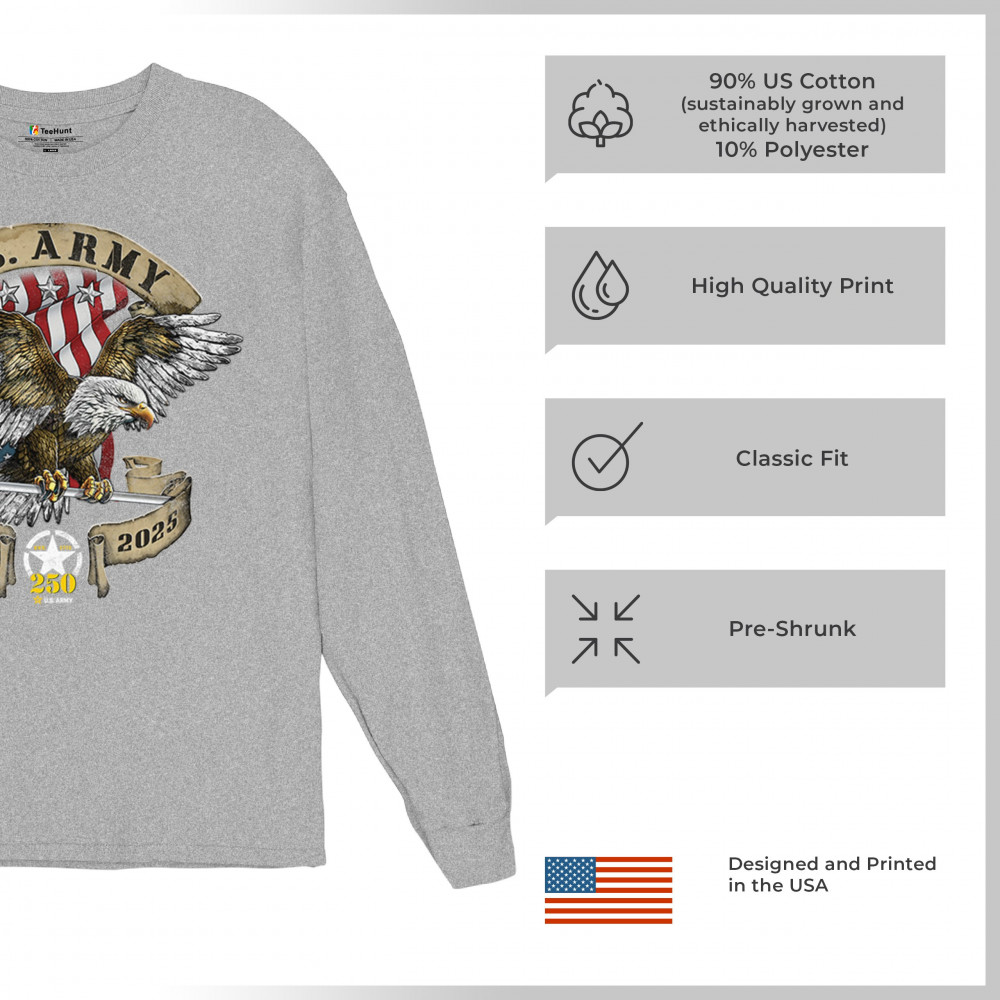 Celebrate the U.S. Army’s 250th Anniversary with patriotic eagle art, Army apparel, Veterans Day pride, and American freedom tribute.