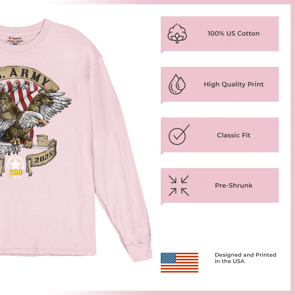 Celebrate the U.S. Army’s 250th Anniversary with patriotic eagle art, Army apparel, Veterans Day pride, and American freedom tribute.