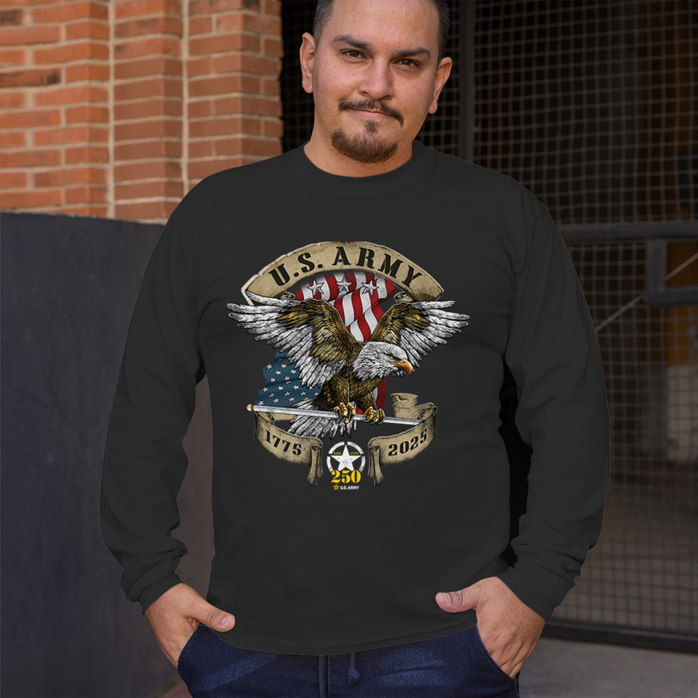 Celebrate the U.S. Army’s 250th Anniversary with patriotic eagle art, Army apparel, Veterans Day pride, and American freedom tribute.