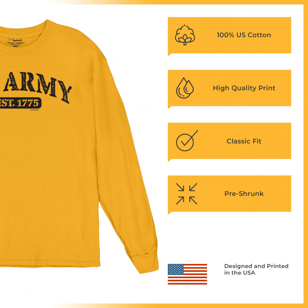 Our licensed U.S. Army design is a testament to the indomitable spirit of American service. It's a tribute to the valorous life and resilient history of those who've worn the uniform. This apparel honors every veteran's sacrifice and embodies the pride of military families. With each thread, feel the readiness and strength of our armed forces, and join in the patriotic celebration of our soldiers' duty and combat spirit.