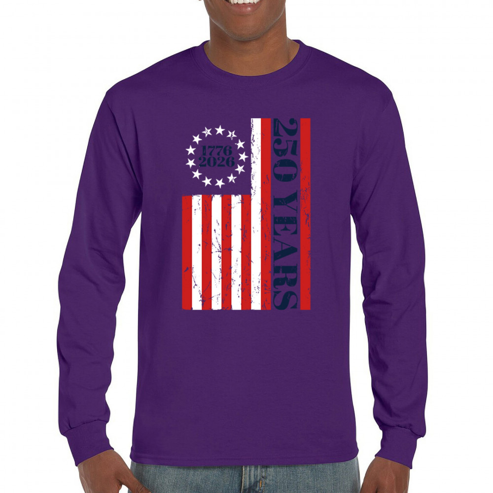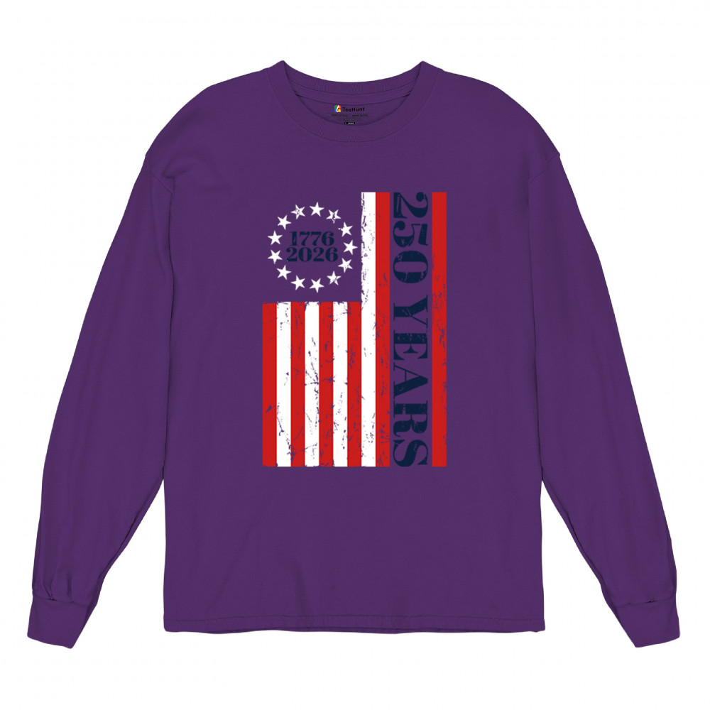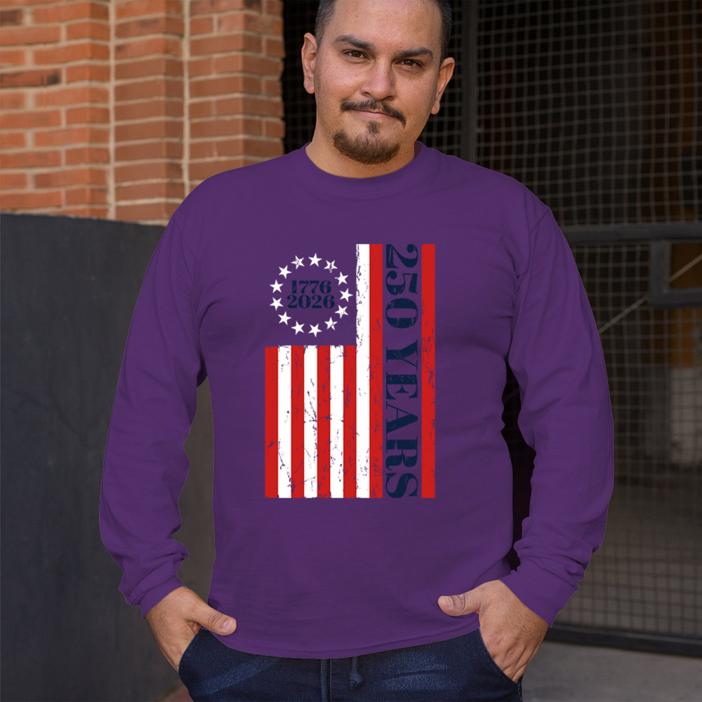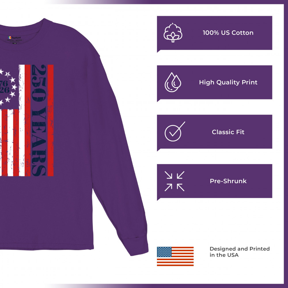 Celebrate USA 250 with patriotic flag shirt, America heritage 250, 1776–2026 milestone, American pride, and Independence Day freedom.