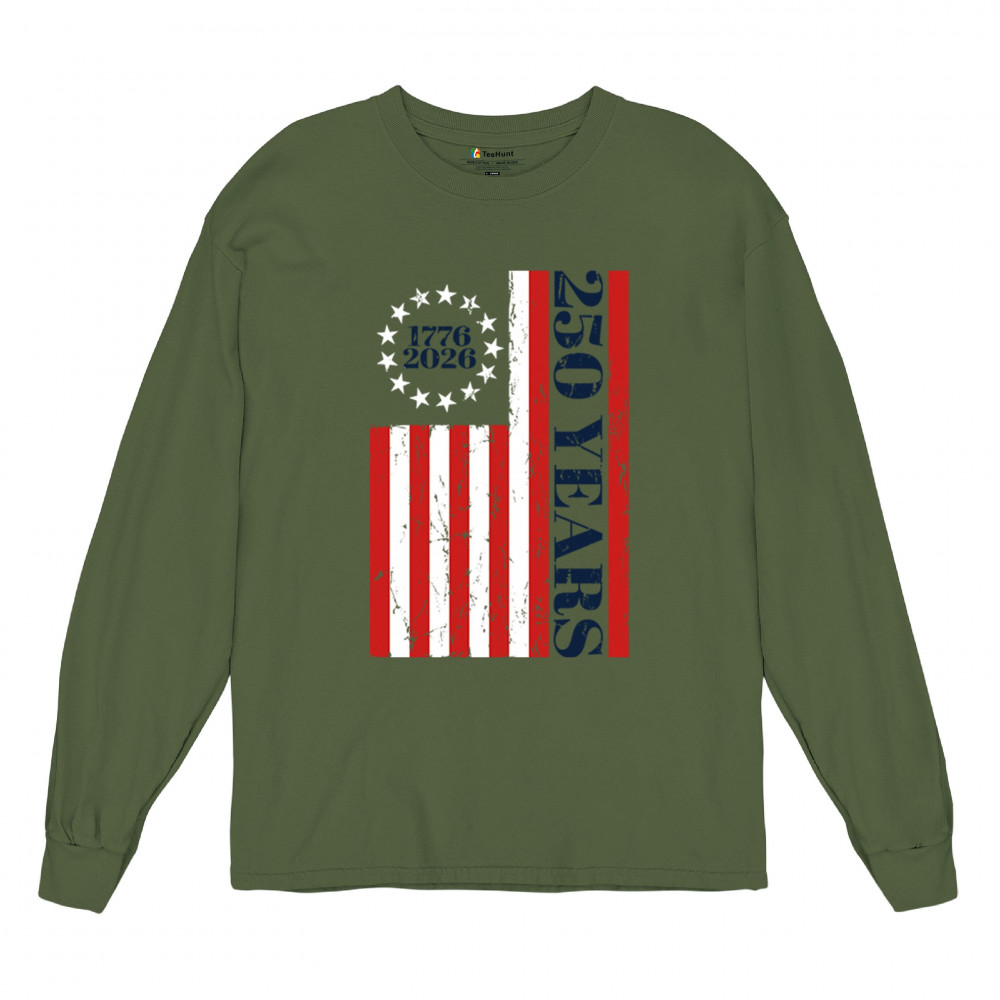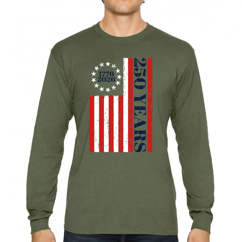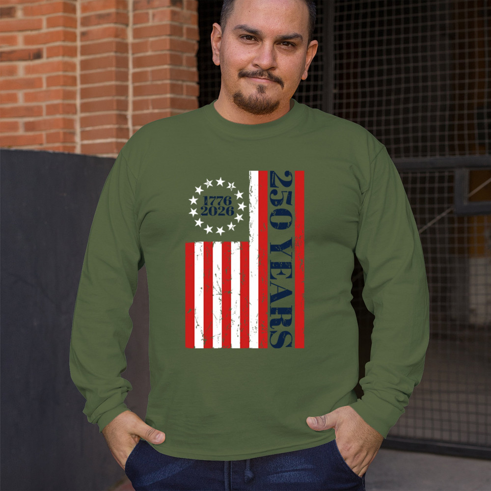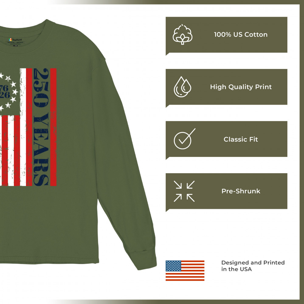 Celebrate USA 250 with patriotic flag shirt, America heritage 250, 1776–2026 milestone, American pride, and Independence Day freedom.
