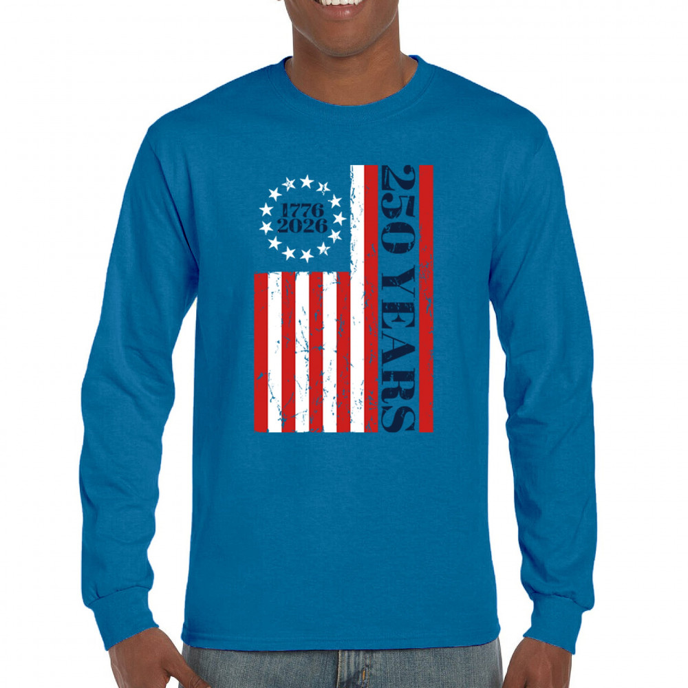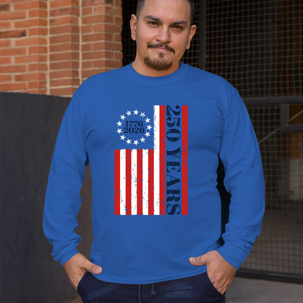 Celebrate USA 250 with patriotic flag shirt, America heritage 250, 1776–2026 milestone, American pride, and Independence Day freedom.