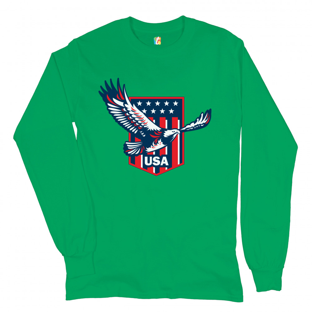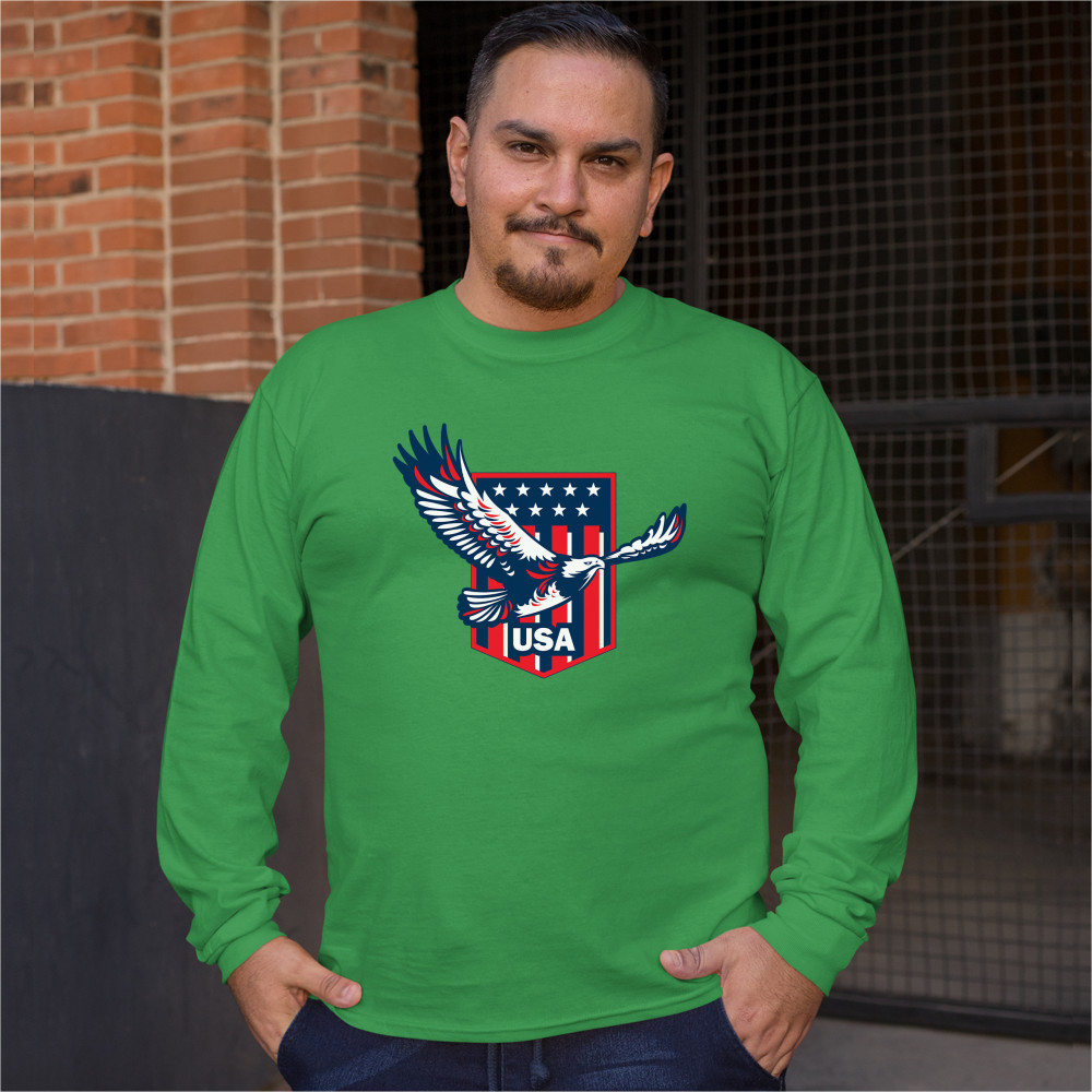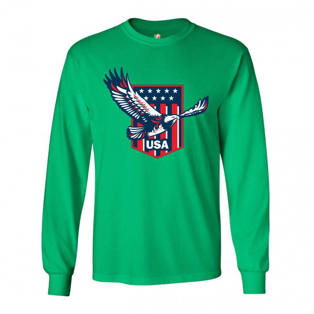 USA BALD EAGLE long sleeve t-shirt stars and stripes shield 4th of july green