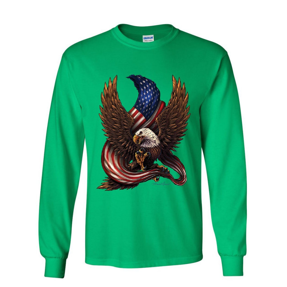 AMERICAN BALD EAGLE usa stars and stripes long sleeve t-shirt patriot american pride bald eagle tee green