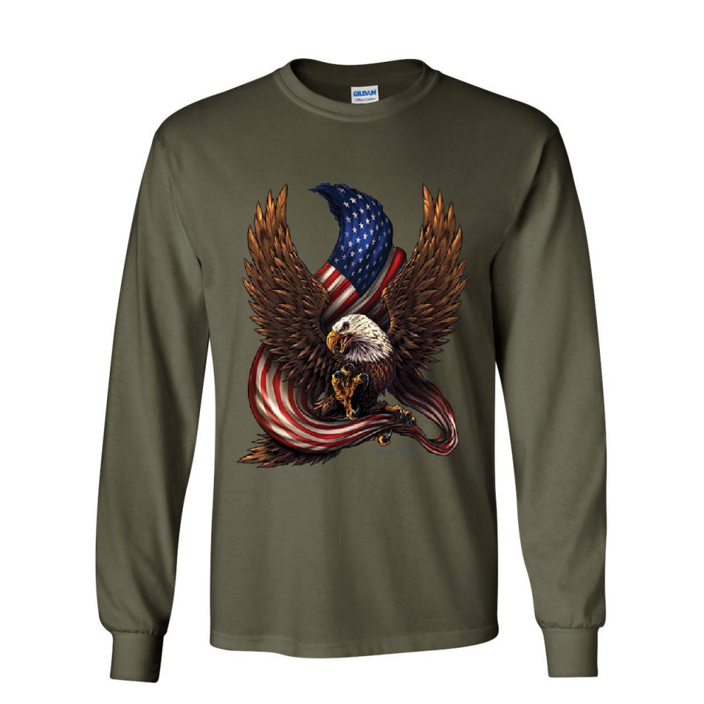 AMERICAN BALD EAGLE usa stars and stripes long sleeve t-shirt patriot american pride bald eagle tee military green