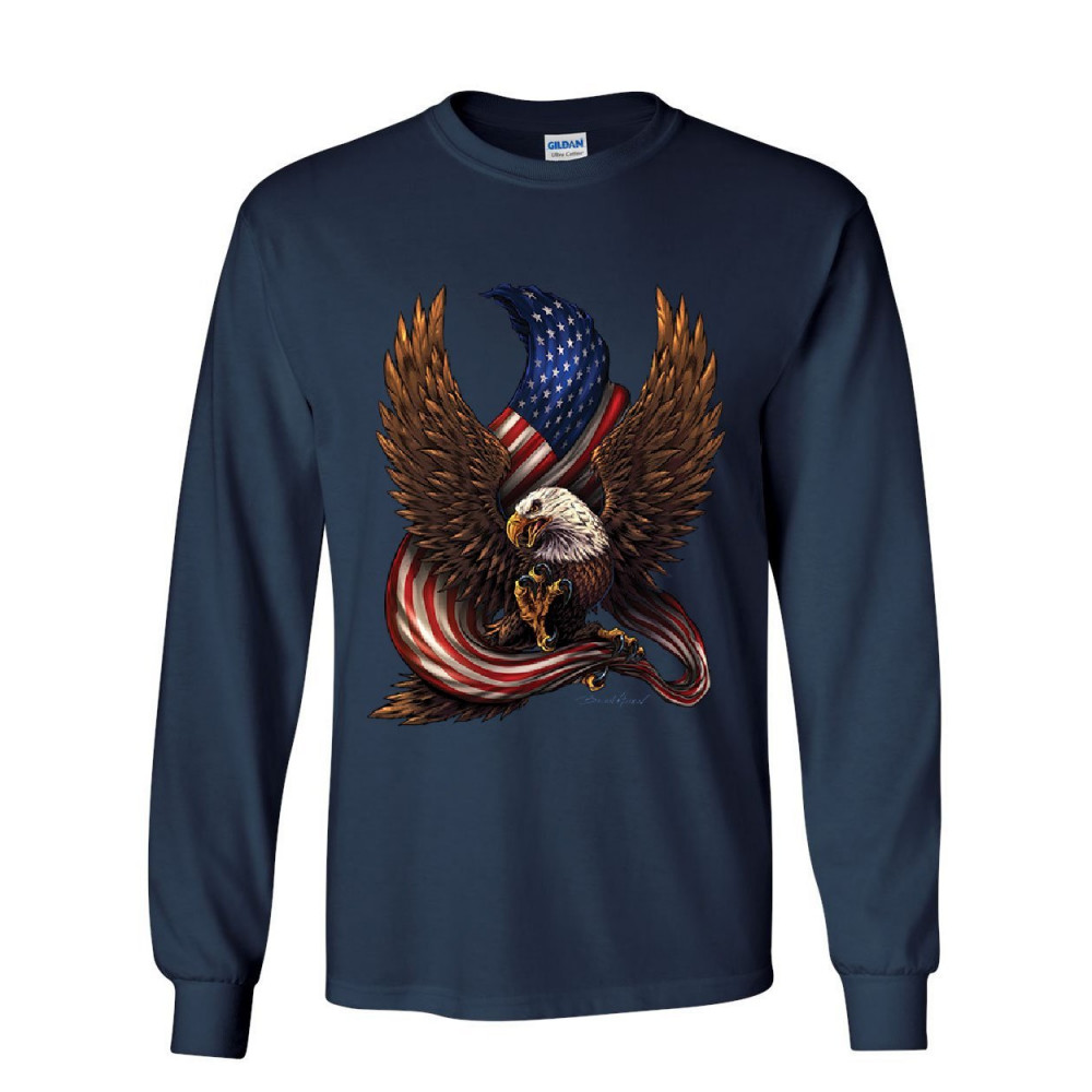 AMERICAN BALD EAGLE usa stars and stripes long sleeve t-shirt patriot american pride bald eagle tee navy blue