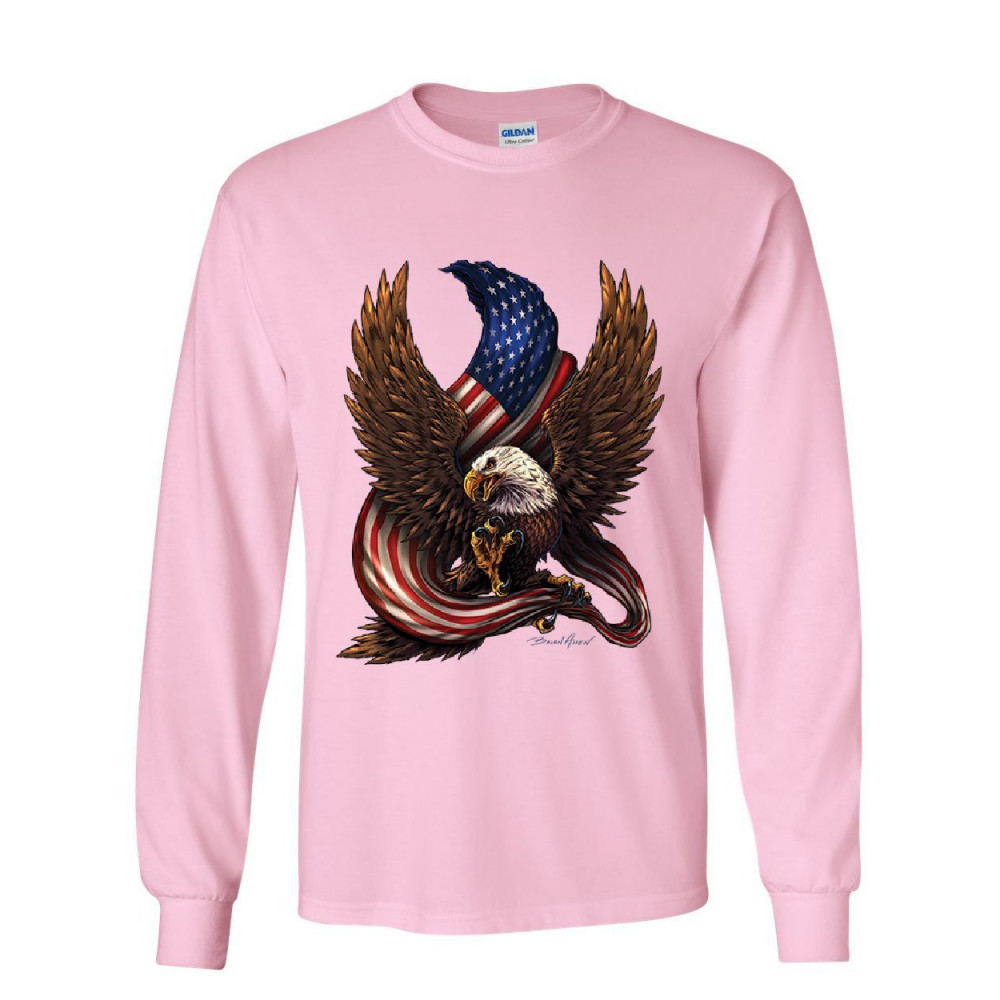AMERICAN BALD EAGLE usa stars and stripes long sleeve t-shirt patriot american pride bald eagle tee light pink