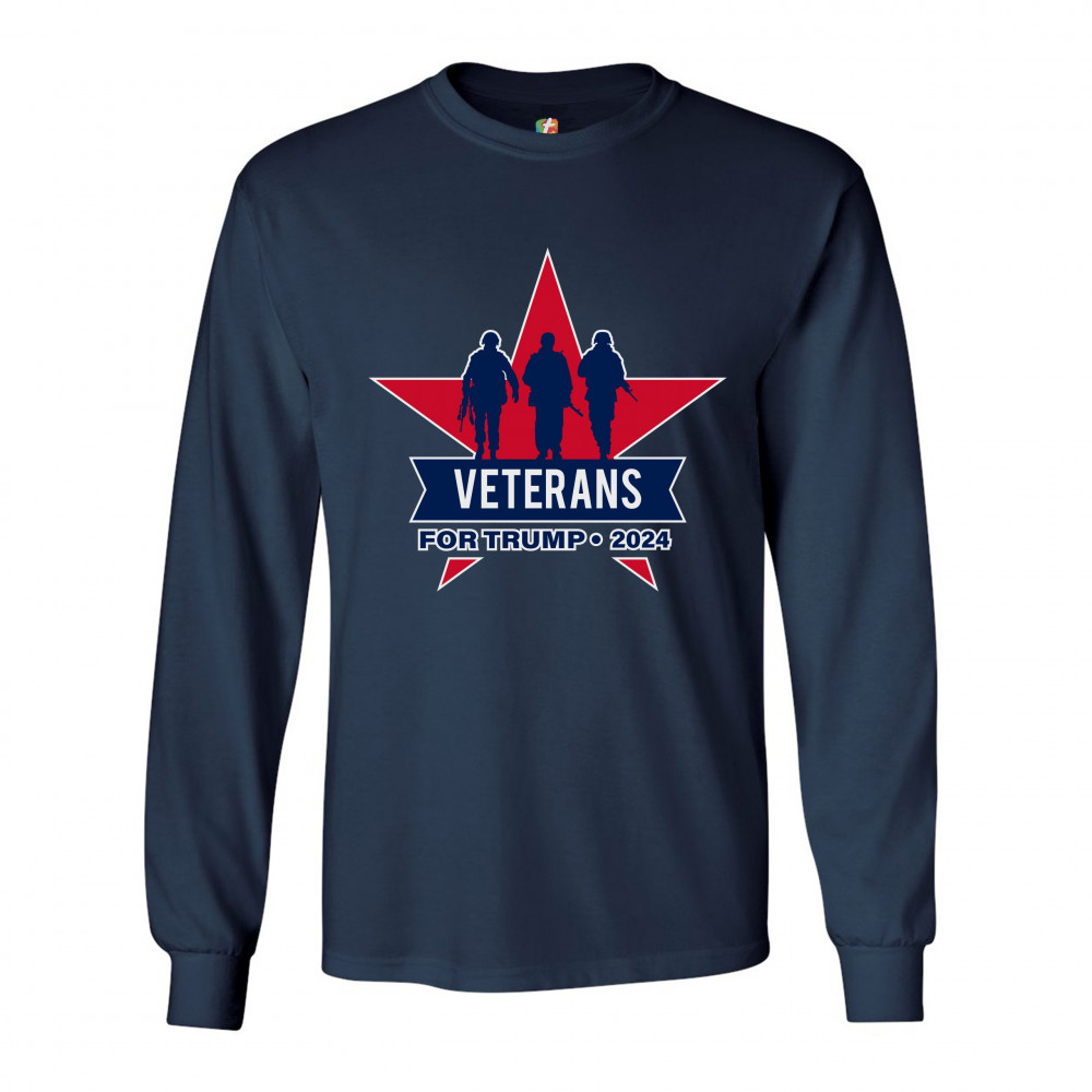 VETERANS FOR TRUMP 2024 long sleeve t-shirt keep america great maga military navy blue