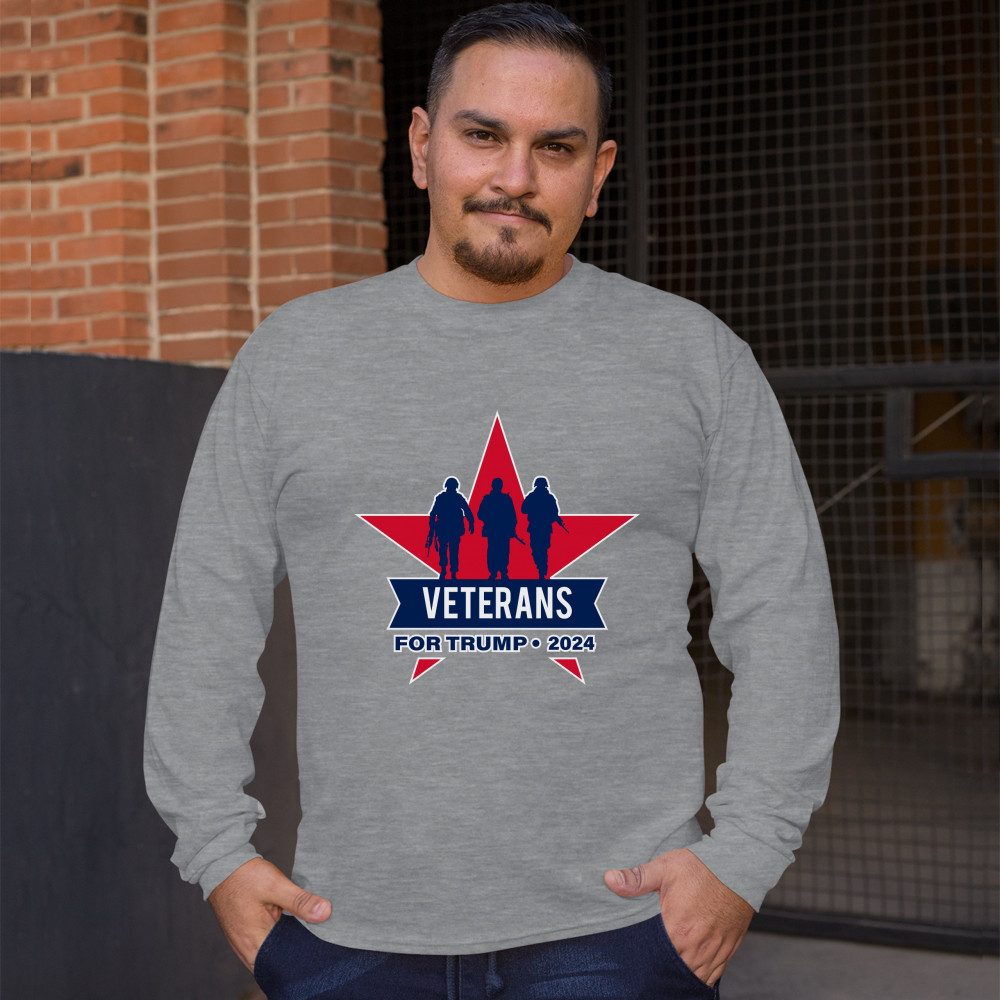 VETERANS FOR TRUMP 2024 long sleeve t-shirt keep america great maga military gray