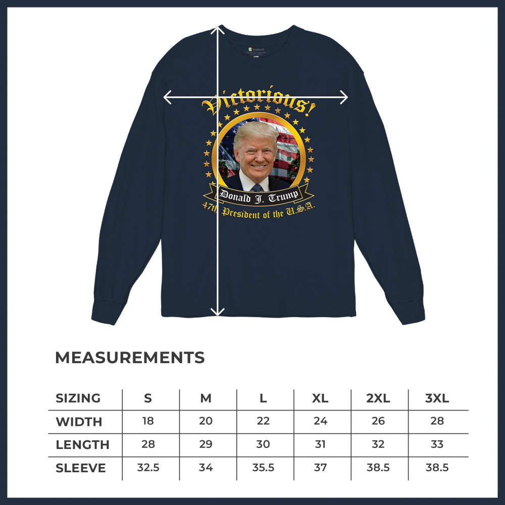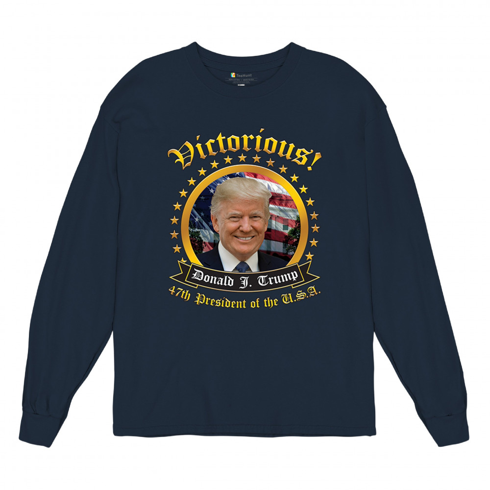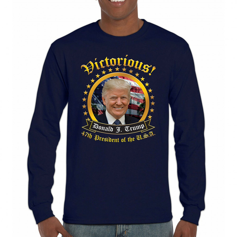 The "Victorious" design captures the spirit of Donald J. Trump’s victory as the 47th President, embodying the pride and patriotism of true American supporters. With elements of the American flag and an inspiring message, it’s a perfect symbol for Republicans, conservatives, and America First advocates. Celebrate the Red Wave and stand for a strong, united nation. Perfect for showing support at rallies, gatherings, or casual wear.