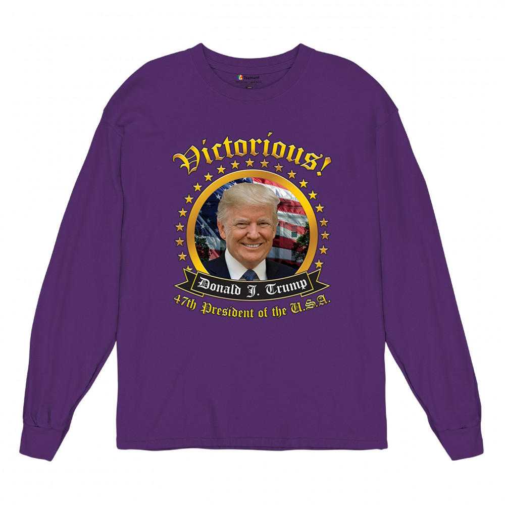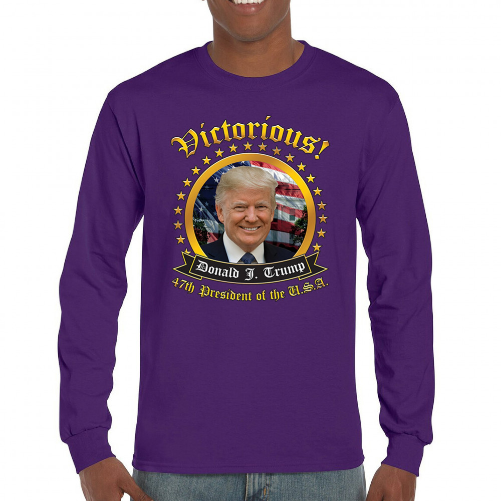 The "Victorious" design captures the spirit of Donald J. Trump’s victory as the 47th President, embodying the pride and patriotism of true American supporters. With elements of the American flag and an inspiring message, it’s a perfect symbol for Republicans, conservatives, and America First advocates. Celebrate the Red Wave and stand for a strong, united nation. Perfect for showing support at rallies, gatherings, or casual wear.